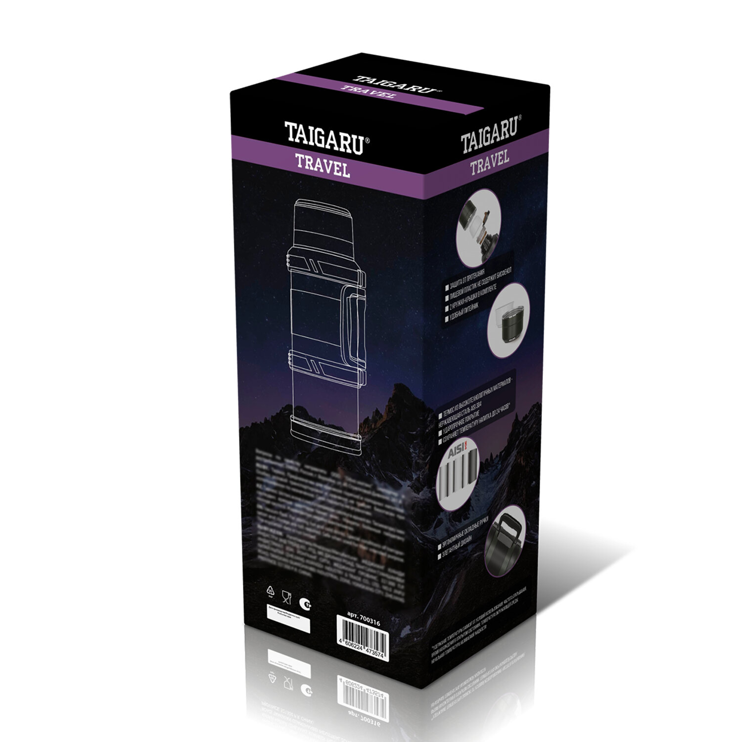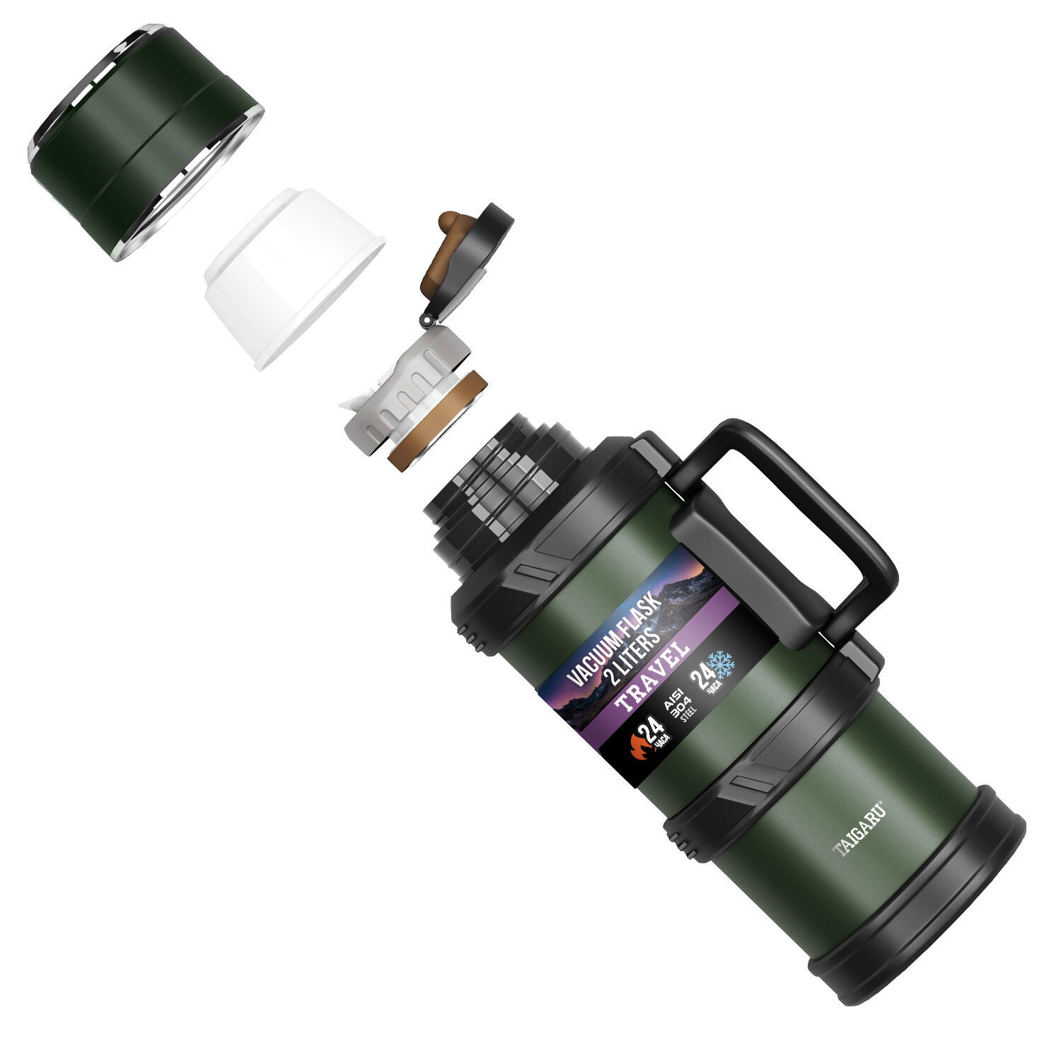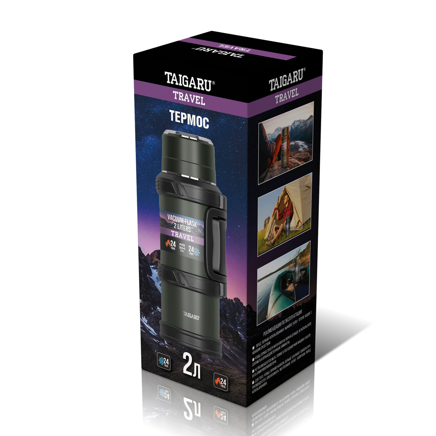 Термос 2 л TAIGARU (ТАЙГАРУ) TRAVEL, нержавеющая сталь SUS304, 2 кружки, скрытая ручка, ситечко, темно-зеленый Код товара: 700316 1 502,36 ₽ Купить Производитель:TAIGARU Удобный термос TAIGARU с эргономичной ручкой – идеальное решение для путешествий, семейных выездов или пикников. Сохраняет температуру до 24 часов, легко переносится благодаря надёжной ручке. Большой объём делает его отличным выбором для компании. Термос TAIGARU TRAVEL сделан из нержавеющей стали SUS304. Использование материалов высокого качества, вакуумная конструкция с двойными стенками и качественные силиконовые уплотнители делают термос полностью герметичным, безопасным для здоровья, позволяет удерживать температуру до 24 часов и не протекает при использовании. Удержание температуры также зависит от условий использования: частоты открывания, времени нахождения в открытом состоянии, температуры окружающей среды, начальной температуры наливаемой жидкости. Корпус имеет порошковое покрытие глубокого темно-зеленого цвета, которое не только обеспечивает термосу стильный дизайн, но и препятствует появлению мелких царапин при долгосрочном использовании. Термос TAIGARU снабжен черным пластиковым каркасом, имеющим удобную скрытую раскладывающуюся ручку для удобной переноски. В комплект входят две крышки-кружки: основная и дополнительная пластиковая. Конструкция термоса включает в себя продуманную систему герметизации: эргономичная винтовая пробка с удобным кнопочным механизмом обеспечивает лёгкость использования, а высококачественные силиконовые уплотнители гарантируют абсолютную защиту от протекания. Особого внимания заслуживает встроенное фильтрующее ситечко, которое эффективно задерживает чайные листья и другие компоненты напитка, позволяя наслаждаться чистым и безупречным вкусом прямо из термоса. Термос TAIGARU высотой 33,3 см имеет диаметр горлышка 6,2 см, диаметр донышка – 11,5 см, а вместе с пластиковым каркасом – 13,5 см. Объем – 2 л.Производство: КитайОбъем: 2 лТип горла: узкоеНаличие ручки: даКомплектация: дополнительная кружкаСерия: TRAVELВысота: 33.3 смДиаметр: 11.5 смЦвет: темно-зеленыйМатериал: нержавеющая сталь 304Тип упаковки: картонная коробкаВес: 1,38 кгРазмер упаковки: 13.1 × 34.8 × 13.8 смОбъём: 0.0076 м3Промежуточная упаковка: 12 штТранспортная упаковка: 12 штШтрих-код: 4606224473574 Сертификат-1.jpg Сертификат-2.jpg