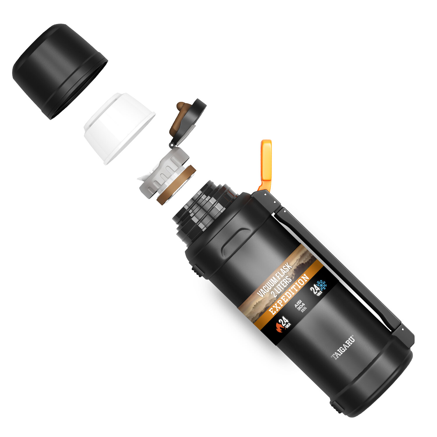 Термос 2 л TAIGARU (ТАЙГАРУ) EXPEDITION, нержавеющая сталь SUS304, 2 кружки, 2 ручки, ситечко, черный Код товара: 700317 1 415,36 ₽ Купить Производитель:TAIGARU Удобный термос TAIGARU с двумя эргономичными ручками: идеальное решение для путешествий, семейных выездов или пикников. Сохраняет температуру до 24 часов, легко переносится благодаря надёжной ручке. Большой объём делает его отличным выбором для компании. Термос TAIGARU EXPEDITION сделан из нержавеющей стали SUS304. Использование материалов высокого качества, вакуумная конструкция с двойными стенками и качественные силиконовые уплотнители делают термос полностью герметичным, безопасным для здоровья, позволяет удерживать температуру до 24 часов и не протекает при использовании. Удержание температуры также зависит от условий использования: частоты открывания, времени нахождения в открытом состоянии, температуры окружающей среды, начальной температуры наливаемой жидкости. Корпус имеет порошковое покрытие черного цвета, которое не только обеспечивает термосу стильный дизайн, но и препятствует появлению мелких царапин при долгосрочном использовании. Термос TAIGARU снабжен черным пластиковым каркасом, имеющим две удобных раскладывающихся ручки для удобной переноски. В комплект входят две крышки-кружки: основная и дополнительная пластиковая. Конструкция термоса включает в себя продуманную систему герметизации: эргономичная винтовая пробка с удобным кнопочным механизмом обеспечивает лёгкость использования, а высококачественные силиконовые уплотнители гарантируют абсолютную защиту от протекания. Особого внимания заслуживает встроенное фильтрующее ситечко, которое эффективно задерживает чайные листья и другие компоненты напитка, позволяя наслаждаться чистым и безупречным вкусом прямо из термоса. Термос TAIGARU высотой 34 см имеет диаметр горлышка 6,1 см, диаметр донышка – 10,5 см, а вместе с пластиковым каркасом – 13,6 см. Объем – 2 л.Производство: КитайОбъем: 2 лТип горла: узкоеНаличие ручки: даКомплектация: дополнительная кружкаСерия: EXPEDITIONВысота: 34 смДиаметр: 10.5 смЦвет: черныйМатериал: нержавеющая сталь 304Тип упаковки: картонная коробкаВес: 1,32 кгРазмер упаковки: 12.3 × 34.6 × 14.8 смОбъём: 0.0073 м3Промежуточная упаковка: 12 штТранспортная упаковка: 12 штШтрих-код: 4606224473581 Сертификат-1.jpg Сертификат-2.jpg