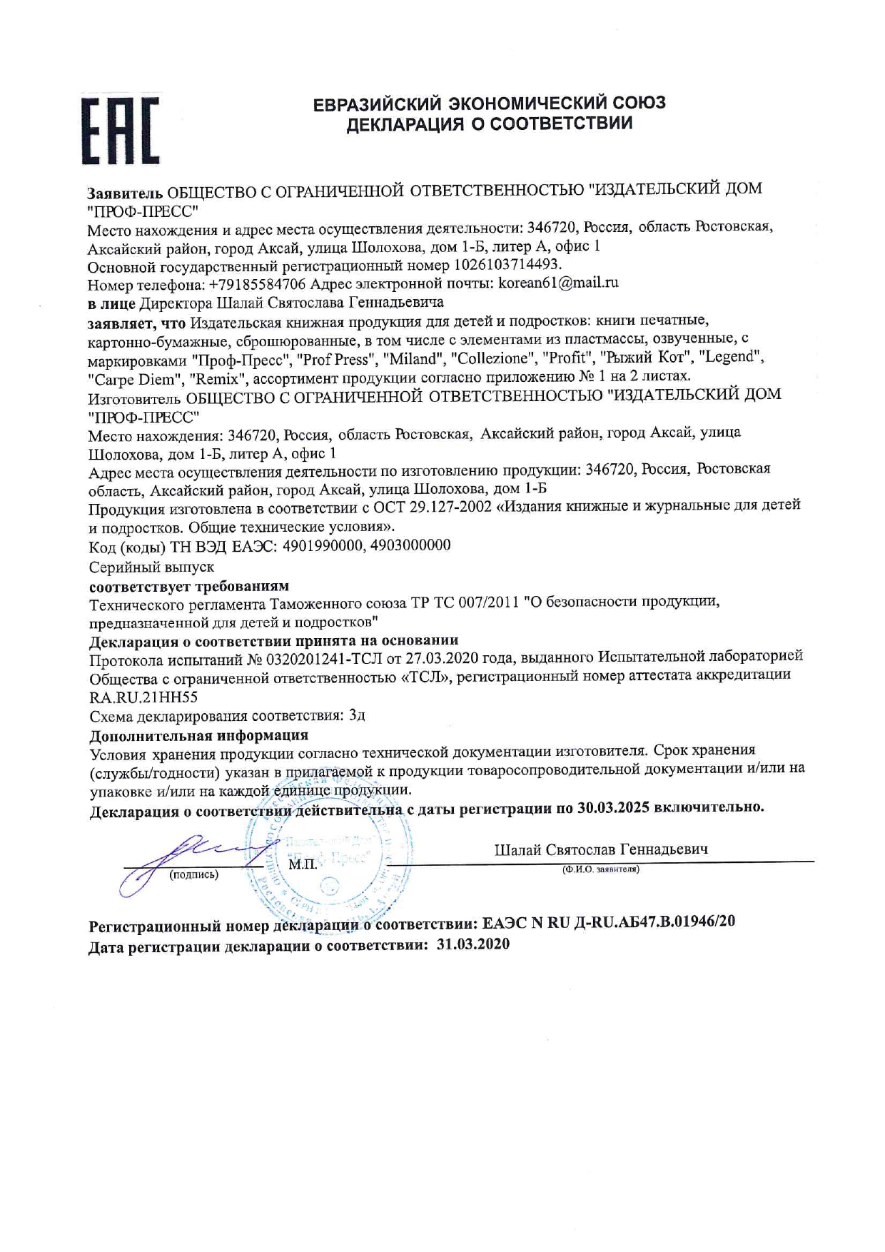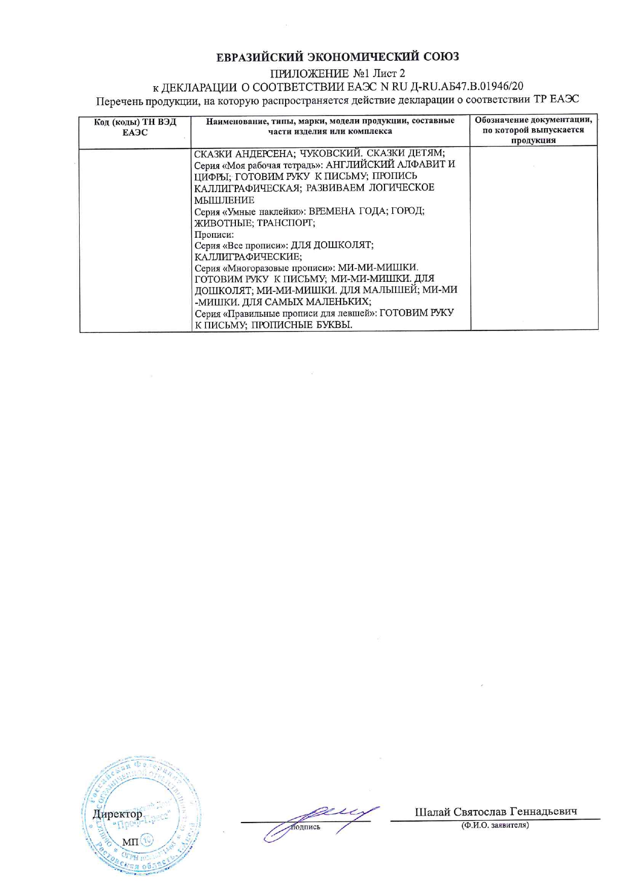 Пропись "Каллиграфическое письмо", АССОРТИ, А4, 16 страниц, ПП Код товара: 691100 57,38 ₽ Купить Производитель:PROF-PRESS Основная цель пособия – развить у ребёнка интеллект, познавательные способности, мелкую моторику. Книга адресована малышам, родителям и педагогам и может быть использована как на групповых занятиях, так и при домашнем обучении. Занятия по пособиям этой серии помогут малышу научиться координировать мелкие движения руки, разовьют усидчивость и позволят чувствовать себя увереннее на школьных уроках письма. Дизайн ассорти без возможности выбора.Производство: РоссияИздательство: Проф-прессАвтор: нетСерия: Каллиграфическая прописьТематика: ассортиГод издания: 2021Формат: А4Количество страниц: 16Тип обложки: скрепкаЯзык издания: русскийВозрастное ограничение: 3+ISBN: -Вес: 47 грРазмер упаковки: 0.1 × 28.1 × 20 смОбъём: 0.0001 м3Промежуточная упаковка: 30 штТранспортная упаковка: 30 штШтрих-код: 4665299629958 Файлы Сертификат-1.jpg Сертификат-2.jpg Сертификат-3.jpg Сертификат-4.jpg Сертификат-5.jpg Сертификат-6.jpg Сертификат-7.jpg Сертификат-8.jpg Сертификат-9.jpg Сертификат-10.jpg Сертификат-11.jpg Сертификат-12.jpg
