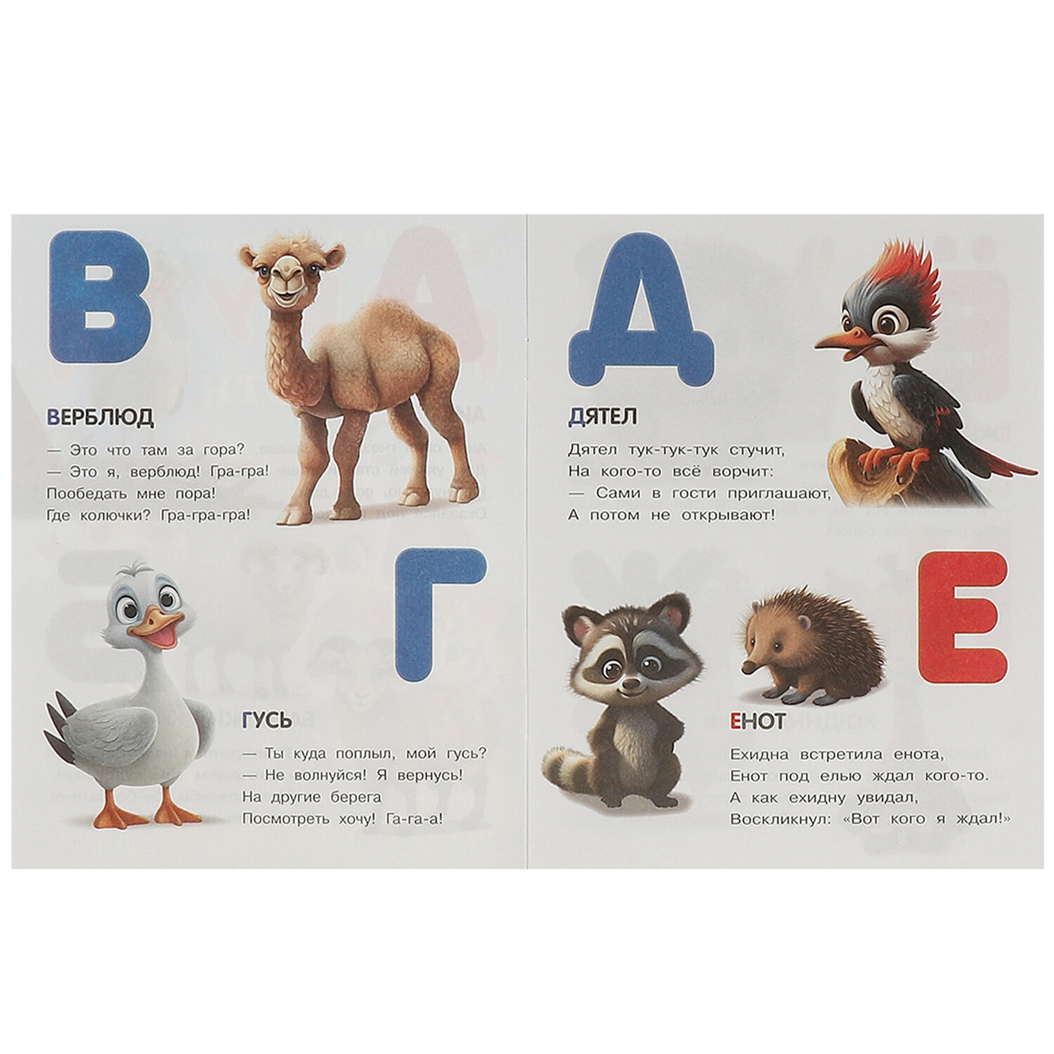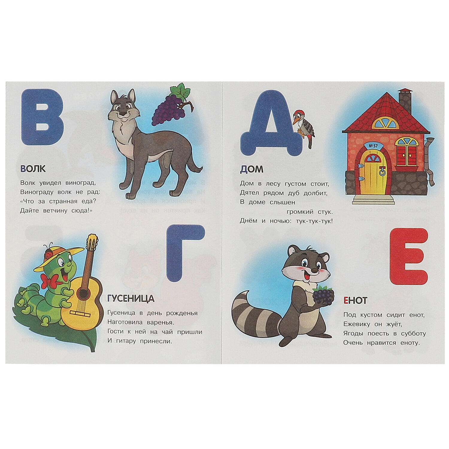Книжка - пособие АЗБУКА, ассорти, 163х215 мм, 16 стр., УМКА Код товара: 691220 56,4 ₽ Купить Производитель:УМКА Книжки-пособия серии "АЗБУКА" помогут легко и быстро познакомить ребенка с буквами русского языка и научить его читать. В этих красочных книжках вы найдете азбуку в стихах, которая отлично подойдет для первого знакомства с буквами.Производство: РоссияСерия: АзбукаФормат: 163 х 215Сюжет: ассортиВозрастная группа: 0+Количество листов: 8Обложка: глянцеваяВнутренний блок: офсетПлотность внутренного блока: 80 г/м2Тип скрепления: скобаВес: 37 грРазмер упаковки: 0.1 × 21.5 × 16.6 смОбъём: 0.0002 м3Промежуточная упаковка: 20 штТранспортная упаковка: 20 штШтрих-код: 6934600007685