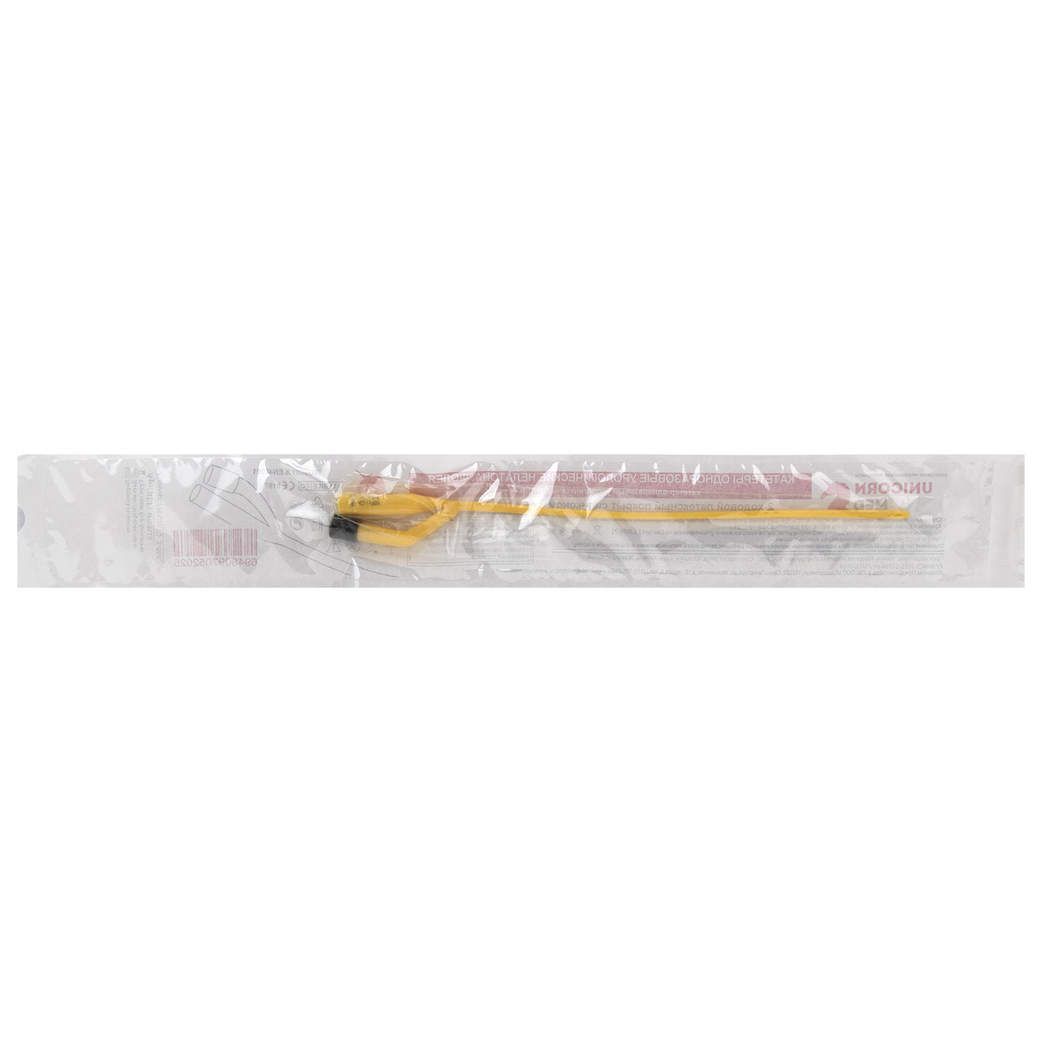 Катетер урологический Фолея CH/FR 10, 28 см с проводником, КОМПЛЕКТ 10 шт., UNICORNMED Код товара: 631540 688,8 ₽ Купить Производитель:UNICORNMED Катетер Фолея UNICORNMED двухходовой предназначен для продолжительной (до 7 суток) катетеризации мочевого пузыря, производимой как в диагностических, так и в лечебных целях. Катетер Фолея изготовлен из медицинского латекса, покрытого силиконом для исключения аллергической реакции. Оптимально жесткий до введения, размягчается от температуры тела при вводе, что облегчает процесс введения и исключает необходимость использования смазки, способствуя снижению ощущения дискомфорта у пациента. • Катетер имеет: - двойную индивидуальную стерильную упаковку; - прочный и симметричный баллон объемом от 3 мл до 5 мл для фиксации катетера в мочевом пузыре; - противовозвратный клапан для наполнения баллона (при помощи шприца без иглы) воздухом или физиологическим раствором; - плавный переход от баллона к стержню катетера, что уменьшает возможность возникновения травм; - атравматичный закрытый коннектор типа Нелатон, обеспечивающий его совместимость с мочеприемниками различного вида, с двумя боковыми отверстиями; - длину 28 ± 2 см, проводник для облегчения манипуляций. Цветомаркированный коннектор помогает определить размер катетера по шкале Шарьера.Производство: КитайТип: катетер ФолеяРазмер: СН/FR 10Длина: 28 смВид: 2-х ходовойПол: мужскойКоличество в комплекте: 10 шт.Срок годности: 60 месВес: 201 грРазмер упаковки: 4.2 × 51.2 × 7.8 смОбъём: 0.002 м3Промежуточная упаковка: 50 штТранспортная упаковка: 50 штШтрих-код: 6948097052028 Сертификат-1.jpg Сертификат-2.jpg Сертификат-3.jpg
