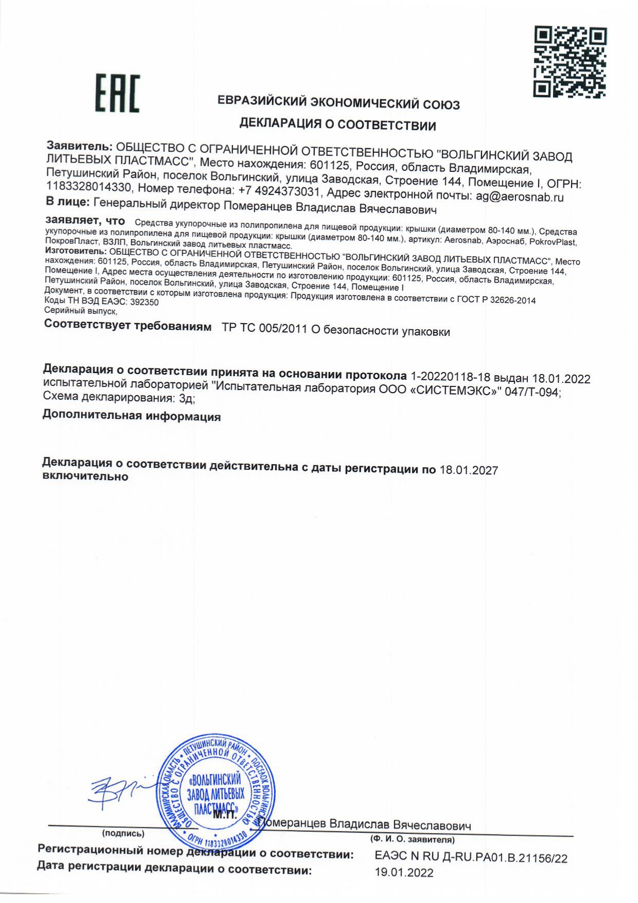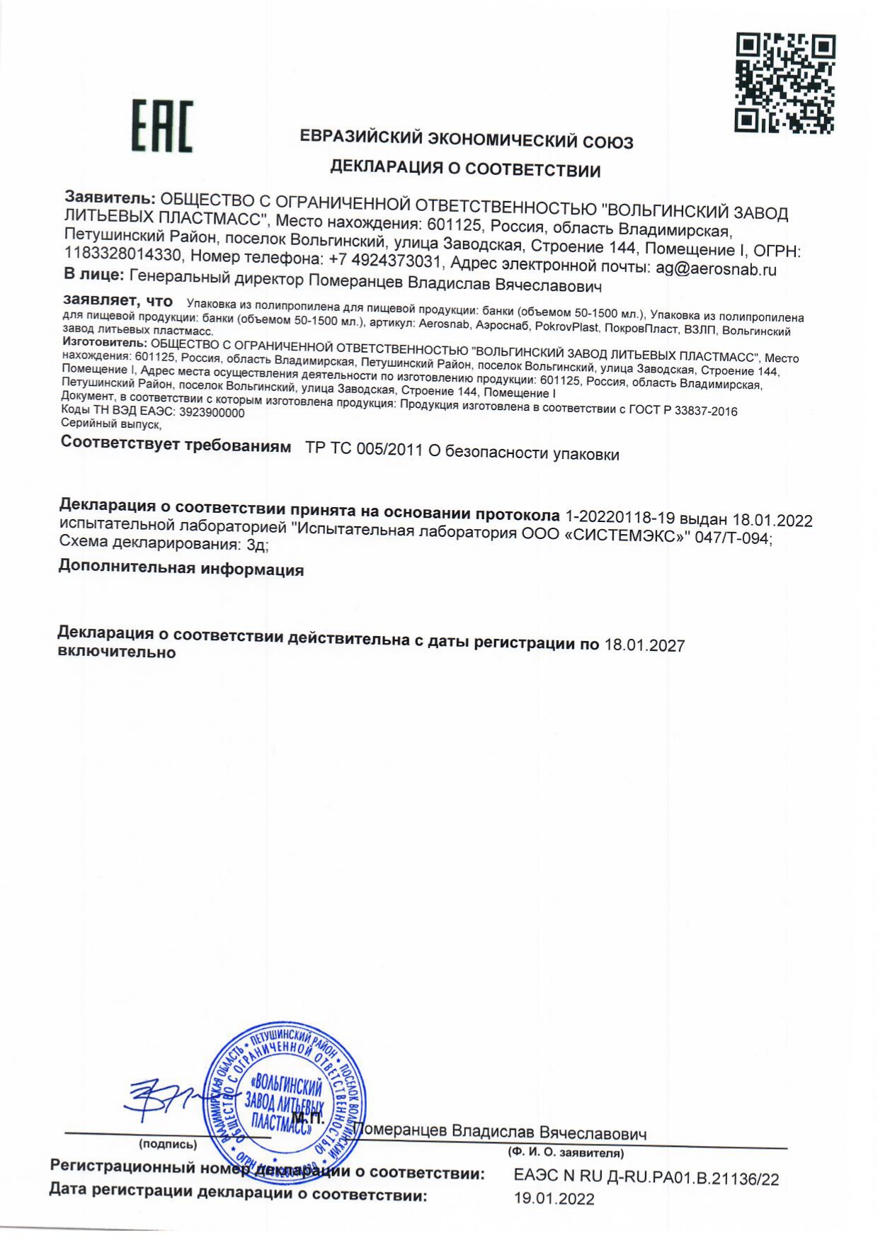 Банка с крышкой 385 мл, пластиковая под пресервы с контрольным замком, диаметр 122 мм, ВЗЛП Код товара: 609215 10,63 ₽ Купить Производитель:ВЗЛП Банки с контрольным замком используются для упаковки, хранения, транспортировки и продажи продуктов. Идеально подходят для пресервов, солений, мёда и других готовых блюд. Контрольный замок обеспечивает защиту от вскрытия и герметичность. Пластиковая банка под пресервы изготавливается из прочного и безопасного для пищевых продуктов полипропилена (ПП). Имеет контрольный замок, который представляет собой неразъёмное кольцо, которое отрывается при первом открытии крышки. Это служит гарантией того, что продукт никто не вскрывал. Высота – 47 мм, диаметр – 122 мм.Производство: РоссияТип товара: банка под пресервыФорма контейнера: круглаяОбъем: 385 млТип замка: контрольныйНаличие крышки в комплекте: даМатериал: полипропилен (ПП)Серия: контейнеры одноразовыеДлина: 122 ммШирина: 122 ммВысота: 47 ммЦвет: прозрачныйВес: 27 грРазмер упаковки: 5.2 × 13 × 13 смОбъём: 0.0003 м3Промежуточная упаковка: 225 штТранспортная упаковка: 225 шт Файлы Сертификат-1.jpg Сертификат-2.jpg Сертификат-3.jpg Сертификат-4.jpg