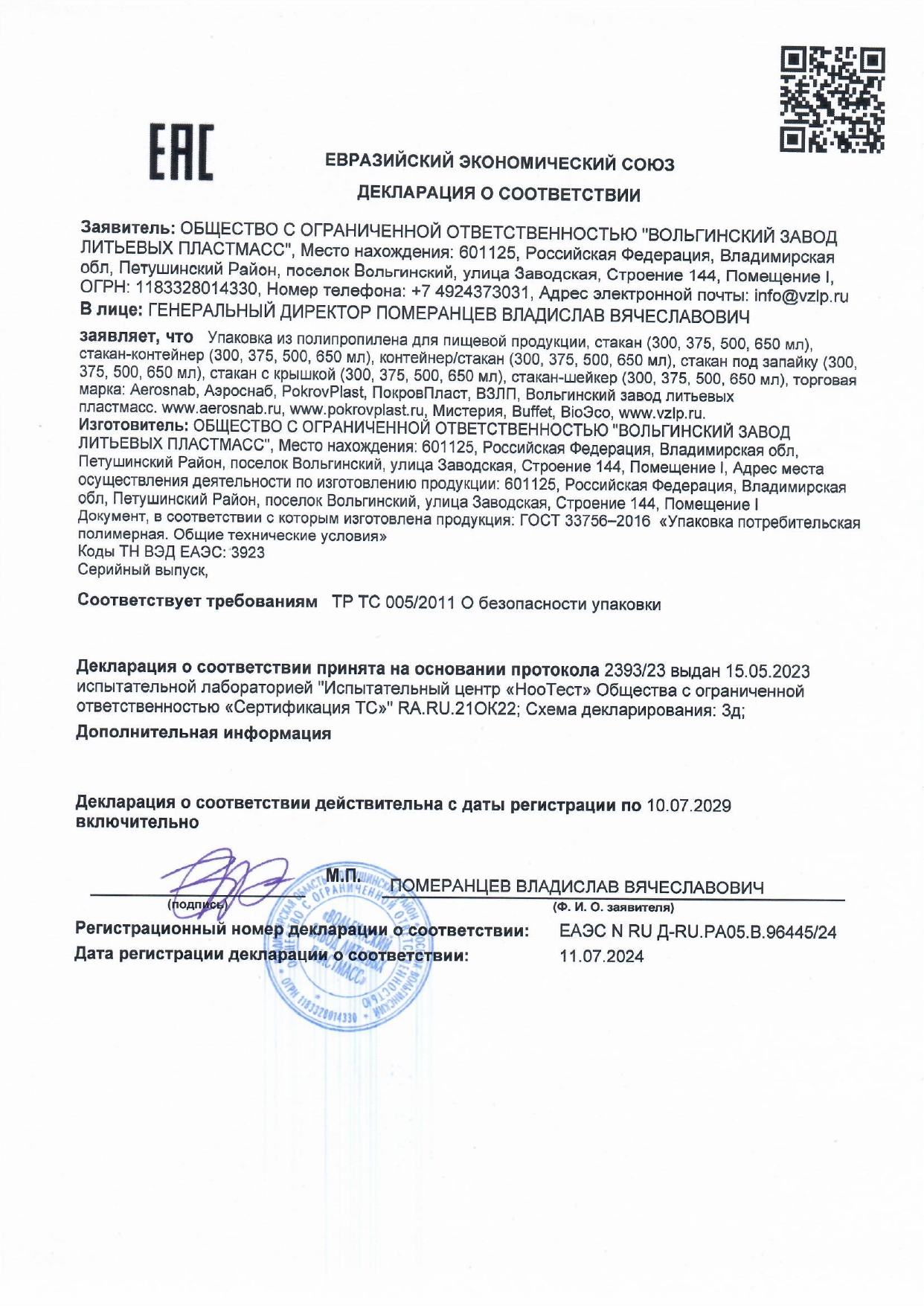 Стакан одноразовый 300 мл, пластиковый прозрачный, Bubble Cup, СВЕРХПЛОТНЫЙ, ВЗЛП Код товара: 609241 5,57 ₽ Купить Производитель:ВЗЛП Прозрачные пластиковые стаканы Bubble Cup используются для подачи как холодных, так и горячих напитков, а также десертов. Они подходят для кафе, баров, массовых мероприятий и домашнего использования. Стаканы изготавливаются из полипропилена (ПП), который подходит для горячих напитков (+100–120 °C) и не выделяет вредных веществ при нагревании, могут использоваться в микроволновой печи. Прозрачный корпус позволяет демонстрировать и контролировать содержимое. Стаканы представлены с глянцевой поверхностью. Объем 300 – мл, диаметр – 90 мм, высота – 80 мм. Пластиковые стаканы Bubble Cup предназначены для холодных и горячих напитков, коктейлей, в приготовлении смузи и шейков. Имеет широкое горлышко, что удобно для добавления топпингов.Производство: РоссияТип товара: стаканОбъем: 300 млМатериал: полипропилен (PP)Количество в упаковке: 500 шт.Диаметр: 90 ммНазначение: для горячих напитков, для холодных напитковКоличество слоёв: 1Серия: Bubble CupСоответствует требованиям ГОСТа: ГОСТ Р 33756-2016Цвет: прозрачныйВес: 11 грРазмер упаковки: 8 × 9 × 9 смОбъём: 0.0001 м3Промежуточная упаковка: 500 штТранспортная упаковка: 500 шт Сертификат-1.jpg Сертификат-2.jpg Сертификат-3.jpg
