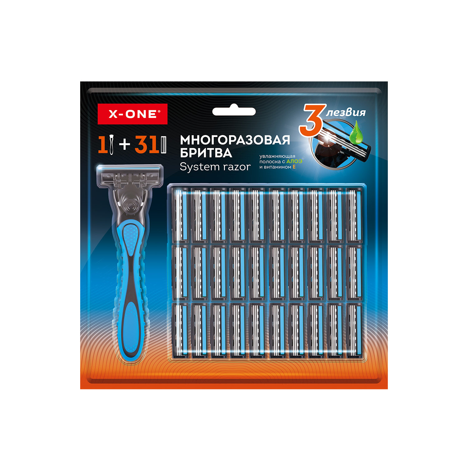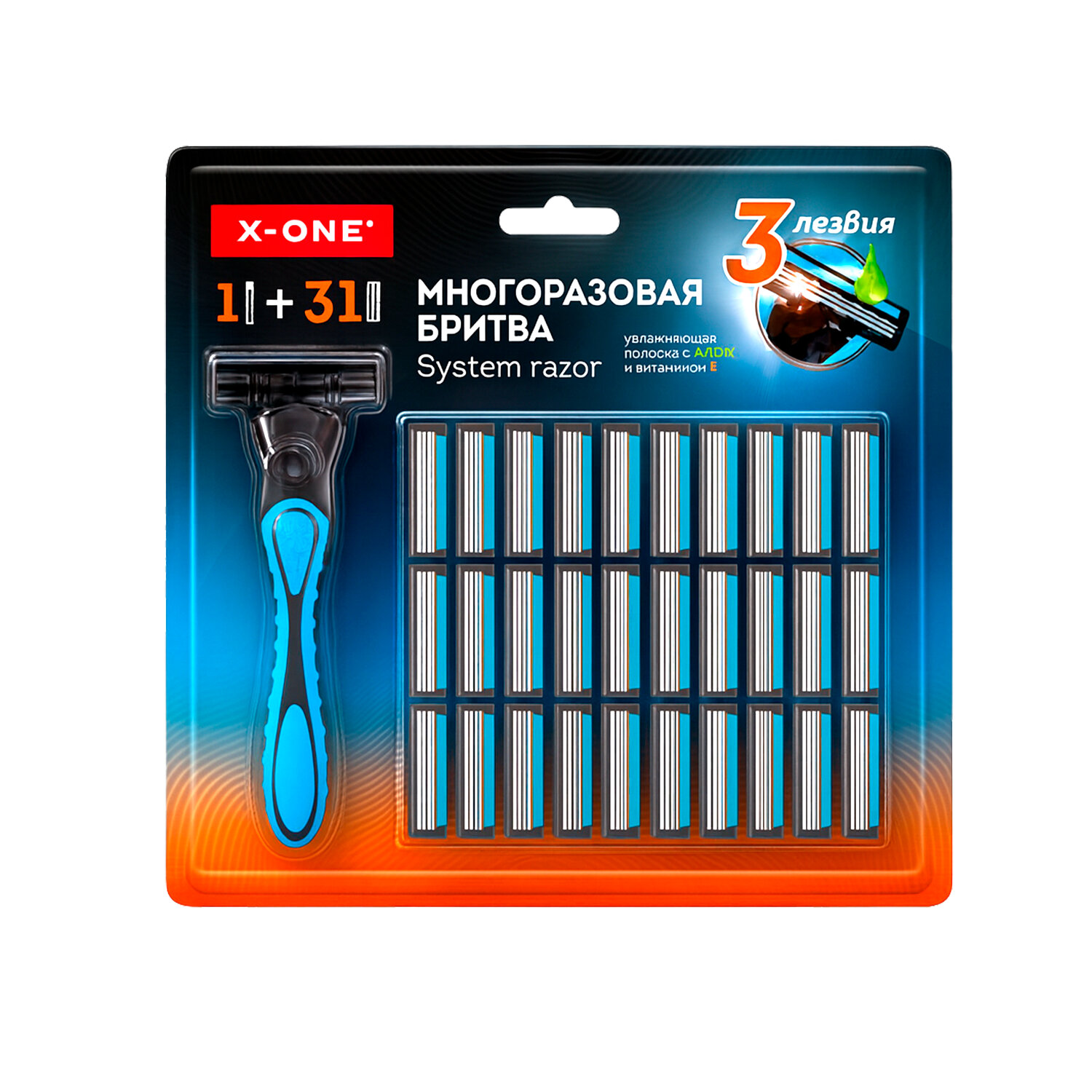 Бритвенный станок многоразовый мужской, 3 лезвия, 31 кассета, синий, X-ONE (ИКС-УАН) Код товара: 700024 458,13 ₽ Купить Производитель:X-ONE Бритва X-ONE с 31 сменной кассетой обеспечивает чистое бритьё и гладкость кожи. Система из 3 тонких лезвий и увлажняющая полоска гарантируют бережное бритьё, обеспечивая комфорт и защиту кожи от раздражений. Бритвенный станок X-ONE с системой из 3 лезвий для точного и чистого бритья. Каждое лезвие выполняет свою функцию – от захвата волоса до его точного среза для длительной гладкости. Увлажняющая полоска защищает кожу, а противоскользящая ручка и эргономичный дизайн обеспечивают удобный и уверенный хват. Всего одно движение для невероятно чистого бритья и шелковистой гладкости кожи. Подвижная головка точно повторяет контуры лица, не пропуская ни одного волоска. В комплекте 31 сменная кассета.Производство: КитайПол: мужскойКоличество лезвий в кассете: 3 шт.Количество в комплекте: 1 шт.Увлажняющая полоска: даПлавающая головка: даКоличество сменных кассет: 31 шт.Серия: станок многоразовый мужскойЭффект: гладкость, комфорт, чистотаВес: 172 грРазмер упаковки: 2.9 × 22.5 × 22.3 смОбъём: 0.0012 м3Промежуточная упаковка: 12 штТранспортная упаковка: 72 штШтрих-код: 4606224461717 Сертификат-1.jpg Сертификат-2.jpg Сертификат-3.jpg