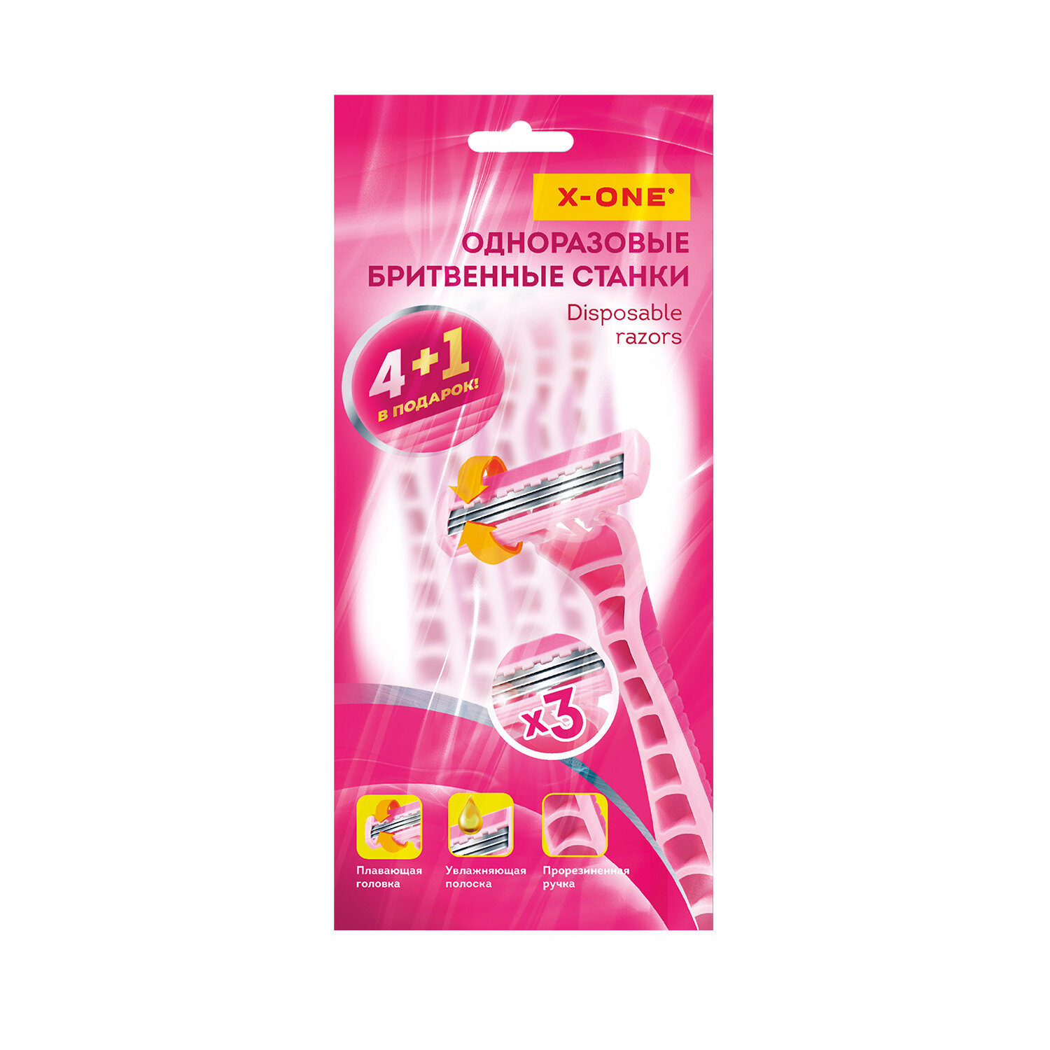 Бритвенные станки одноразовые, 3 лезвия, увлажняющая полоска, плавающая головка, 5 шт., розовый, X-ONE (ИКС-УАН) Код товара: 700034 145,75 ₽ Купить Производитель:X-ONE Одноразовая женская бритва X-ONE с тремя тонкими и острыми лезвиями, смазывающей полоской, уменьшающей раздражение, и плавающей головкой. В упаковке 5 штук. 5 одноразовых бритвенных станков X-ONE с системой из 3 лезвий для чистого бритья. Каждое лезвие выполняет свою функцию – от захвата волоса до его точного среза для длительной гладкости. Имеется смазывающая полоска, уменьшающая раздражение. Плавающая головка повторяет контуры тела. Прорезиненная ручка обеспечивают полный контроль и комфорт во время бритья. Всего одно движение для невероятно чистого бритья и безупречной гладкости кожи.Производство: КитайПол: женскийМатериал: пластикКоличество лезвий: 3Количество станков в комплекте: 5 шт.Эффект от использования: гладкость, комфорт, чистотаСерия: Станки одноразовые с плавающей головкойВид головки: плавающаяУвлажняющая полоска: даЦвет: розовыйВес: 58 грРазмер упаковки: 4 × 23.5 × 10.5 смОбъём: 0.0004 м3Промежуточная упаковка: 48 штТранспортная упаковка: 192 штШтрих-код: 4606224461816 Сертификат-1.jpg Сертификат-2.jpg Сертификат-3.jpg
