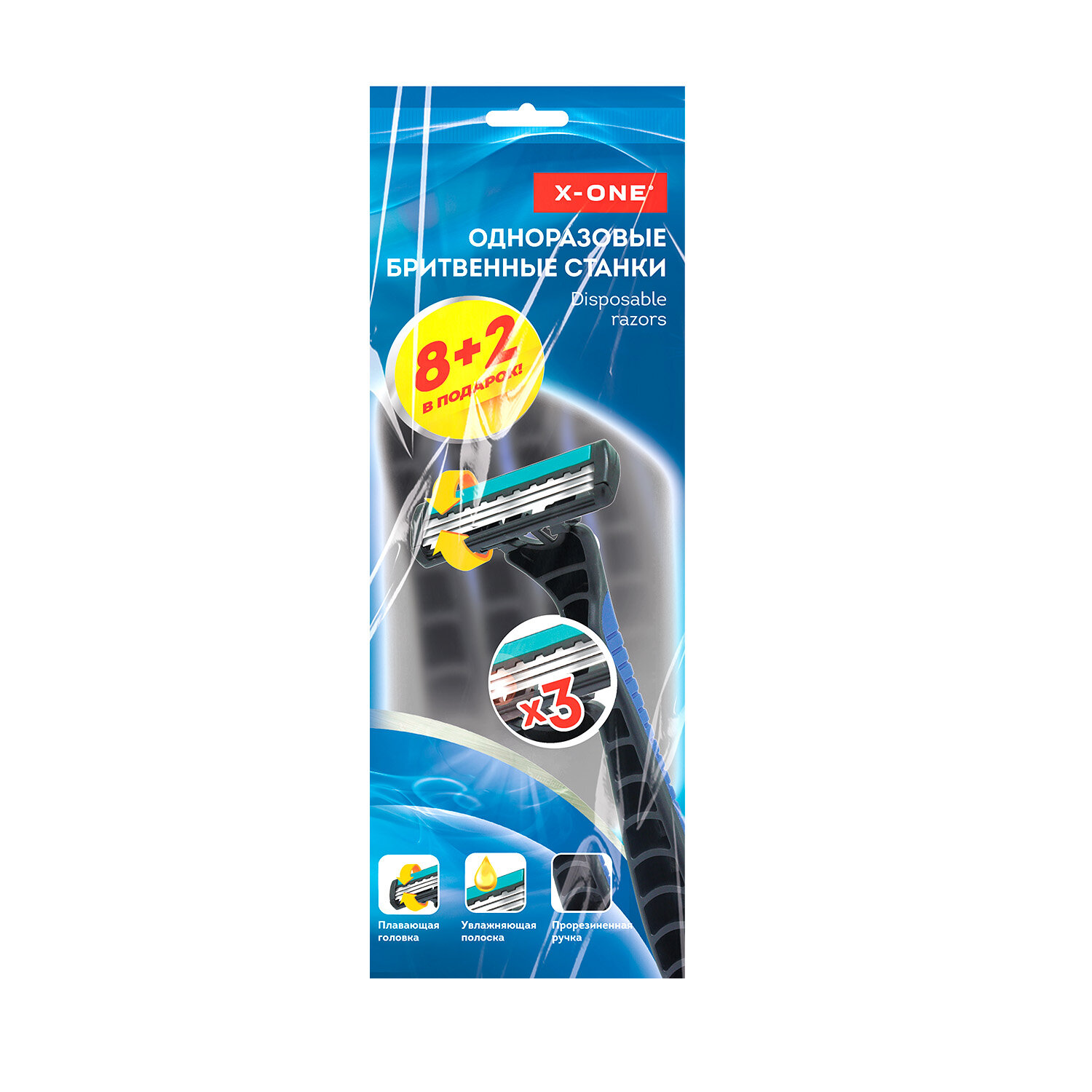Бритвенные станки одноразовые, 3 лезвия, увлажняющая полоска, плавающая головка, 10 шт., синий, X-ONE (ИКС-УАН) Код товара: 700037 239,4 ₽ Купить Производитель:X-ONE Одноразовая бритва X-ONE с тремя тонкими и острыми лезвиями, смазывающей полоской, уменьшающей раздражение, и плавающей головкой. В упаковке 10 штук. 10 одноразовых бритвенных станков X-ONE с системой из 3 лезвий для чистого бритья. Каждое лезвие выполняет свою функцию – от захвата волоса до его точного среза для длительной гладкости. Имеется смазывающая полоска, уменьшающая раздражение. Плавающая головка повторяет контуры лица. Прорезиненная ручка обеспечивают полный контроль и комфорт во время бритья. Всего одно движение для невероятно чистого бритья и безупречной гладкости кожи.Производство: КитайПол: мужскойМатериал: пластикКоличество лезвий: 3Количество станков в комплекте: 10 шт.Эффект от использования: гладкость, комфорт, чистотаСерия: Станки одноразовые с плавающей головкойВид головки: плавающаяУвлажняющая полоска: даЦвет: синийВес: 116 грРазмер упаковки: 4 × 31 × 11 смОбъём: 0.0005 м3Промежуточная упаковка: 24 штТранспортная упаковка: 144 штШтрих-код: 4606224461847 Сертификат-1.jpg Сертификат-2.jpg Сертификат-3.jpg