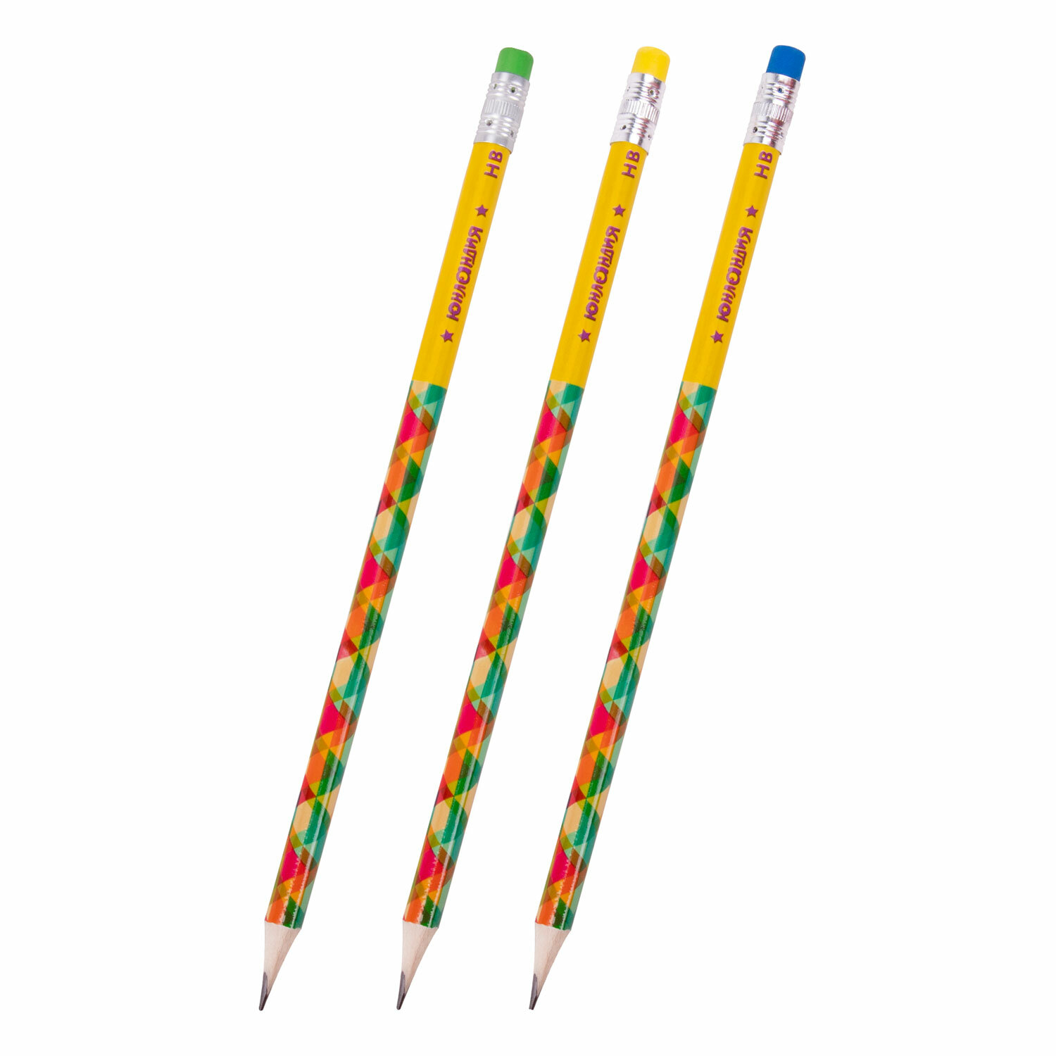 Карандаш чернографитный ЮНЛАНДИЯ, 1 шт., "Калейдоскоп", HB, корпус ассорти, с цветным ластиком Ликвидация Код товара: 181592 6,51 ₽ Купить Производитель:ЮНЛАНДИЯ Карандаш чернографитный ЮНЛАНДИЯ "Калейдоскоп" изготовлен из дерева высокого качества и оснащен ластиком. Предназначен для детского и художественного творчества. Отлично подходит для выполнения чертежных, графических и художественных работ. Каждый карандаш имеет индивидуальный штрих-код. Легко затачивается, максимально устойчив к повреждениям. Изготовлен из дерева высокого качества. Имеет трехгранный корпус с яркой печатью ассорти, оснащен ластиком в трёх цветах ассорти. Карандаш длиной 180 мм обладает средней степенью твердости – HB. Поставляется заточенным в картонной коробке по 12 штук.Производство: КитайТвердость: HBЗаточенный: даНаличие ластика: даДиаметр грифеля: 2.8 ммКоличество карандашей в упаковке: 1 шт.Количество твердостей в наборе: 1Серия: FUNNY YUMMYФорма корпуса: трехграннаяУдаропрочный грифель: даДлина карандаша: 180 ммМатериал корпуса: деревоЦвет корпуса: с дизайномДизайн: КалейдоскопКоличество дизайнов в упаковке: 3 шт.Упаковка: картонная коробка с европодвесомВес: 7 грРазмер упаковки: 0.7 × 18.7 × 0.7 смПромежуточная упаковка: 12 штТранспортная упаковка: 2880 штШтрих-код: 4606224252100 Сертификат-1.jpg Сертификат-2.jpg Сертификат-3.jpg