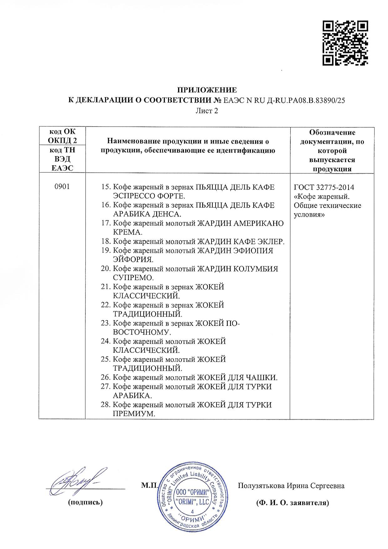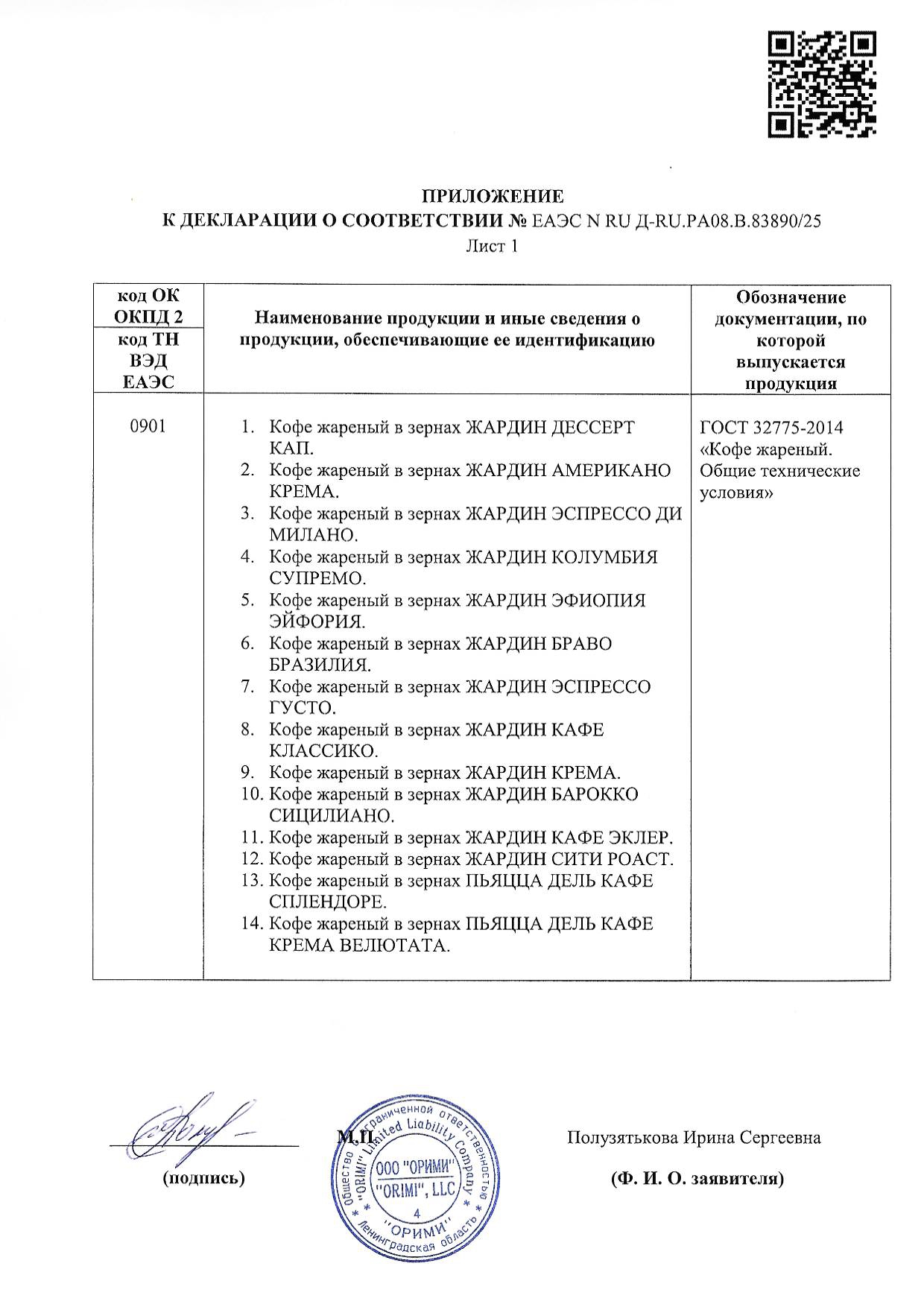 Кофе в зернах ЖОКЕЙ "Традиционный", 800 г Код товара: 624521 1 446,89 ₽ Купить Производитель:ЖОКЕЙ Кофе ЖОКЕЙ "Традиционный" – бленд, объединяющий отборные сорта кофе из Индии и Вьетнама. Плотный, густой вкус с приятной горчинкой удивительно сочетается с легкими сладко-ванильными нотами в аромате.Производство: РоссияМасса нетто: 800 гСтепень обжарки: средняяСорт зерна: смесь арабики и робустыТип кофе: зерновойСрок годности: 24 мес.Вкус: с приятной горчинкой с легкими сладко-ванильными нотамиСерия: ТрадиционныйФирма-производитель: Орими ТрэйдУпаковка: вакуумный пакетСрок годности: 24 месВес: 874 грРазмер упаковки: 9.2 × 27.8 × 15.6 смОбъём: 0.0052 м3Промежуточная упаковка: 6 штТранспортная упаковка: 6 штШтрих-код: 4605246019753 Файлы Сертификат-1.jpg Сертификат-2.jpg Сертификат-3.jpg Сертификат-4.jpg Сертификат-5.jpg