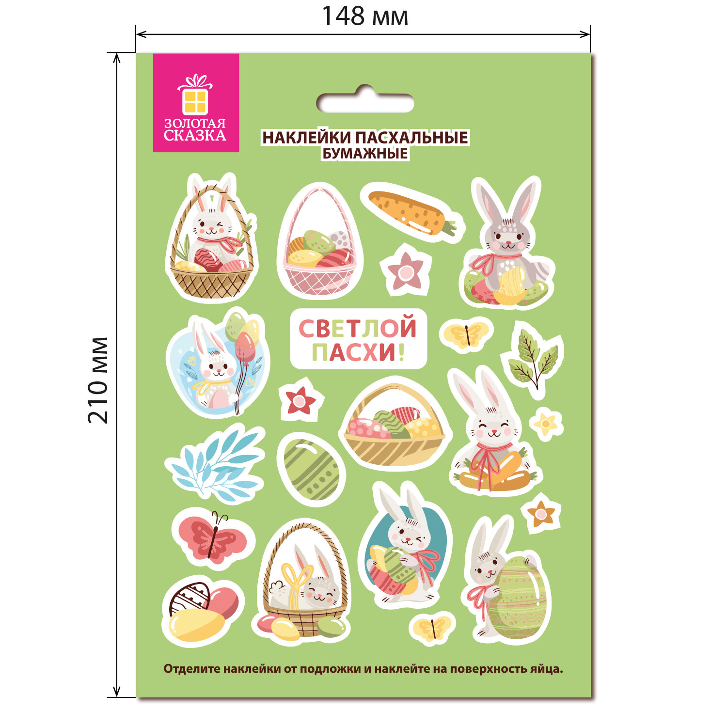 Наклейки пасхальные для яиц 21x14,8 см, "Светлая Пасха", ассорти, ЗОЛОТАЯ СКАЗКА Код товара: 592654 28,17 ₽ Купить Производитель:ЗОЛОТАЯ СКАЗКА Украсьте пасхальные яйца легко и красиво с набором наклеек пасхальных "Светлая Пасха" ЗОЛОТАЯ СКАЗКА! На листе формата 21х14,8 см расположены наклейки в весёлых и жизнерадостных дизайнах: забавные цыплята, милые кролики, пёстрые яички и нежные цветочные узоры – всё, чтобы передать дух светлого праздника (поставляются в 4 дизайнах ассорти, без возможности выбора). Яркие краски и праздничные мотивы мгновенно создадут атмосферу весны и радости. Размер каждой наклейки – до 3 см. Наклейки выполнены на самоклеящейся бумаге: просто оторвите по контуру и приклейте! Идеально подходят не только для украшения пасхальных яиц, но и для множества других идей: декор формы для кулича, оформление подарков, творчество с детьми, скрапбукинг и многое другое.Производство: КитайТип товара: наклейки пасхальныеМатериал: бумагаРазмер: 21х14,8 смКоличество в комплекте: 1 шт.Упаковка: пакетВес: 9 грРазмер упаковки: 0.1 × 21.8 × 15.4 смПромежуточная упаковка: 36 штТранспортная упаковка: 180 штШтрих-код: 4606224535739 Сертификат-1.jpg Сертификат-2.jpg