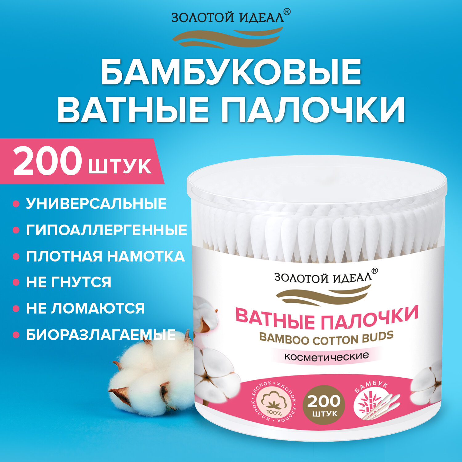 Ватные палочки КОМПЛЕКТ 200 шт., бамбуковый стик, 100% хлопок, пластиковый стакан, ЗОЛОТОЙ ИДЕАЛ Код товара: 116557 123,6 ₽ Купить Производитель:ЗОЛОТОЙ ИДЕАЛ Ватные палочки ЗОЛОТОЙ ИДЕАЛ с бамбуковым стиком предназначены для ежедневных гигиенических и косметических процедур, незаменимы при корректировке и нанесении макияжа. В комплекте 200 ватных палочек, упакованных в полипропиленовый стакан с крышкой. Полностью экологически чистый продукт. Ватный аппликатор сделан из 100% натурального хлопка. Стик изготовлен из бамбука. Ватные палочки упакованы в полипропиленовый стакан с крышкой. Бамбуковый стик прочный, не гнется, легко справляется с задачами любой сложности. Плотный аппликатор надежно закреплен на концах изделия и прекрасно держит форму при намокании. Не оставляет ворсинок и не расслаивается, что делает использование ватных палочек удобным и безопасным. Плотность ватной намотки 6 г на погонный метр. Ватные палочки незаменимы как при использовании в домашних условиях, так и для профессионального применения в салонах красоты. Без них не обойтись при нанесении и снятии макияжа, обработке кутикул.Производство: КитайВид товара: ватные палочкиКоличество в комплекте: 200 шт.Двусторонние: даТип упаковки: пластиковый стаканСерия: BambooПлотность ваты: 6 г/пог. мДлина стика (палочки): 75 ммСырье: 100% хлопокЦвет: белыйВес: 85 грРазмер упаковки: 7.5 × 8 × 8 смОбъём: 0.0007 м3Промежуточная упаковка: 10 штТранспортная упаковка: 120 штШтрих-код: 4606224459547
