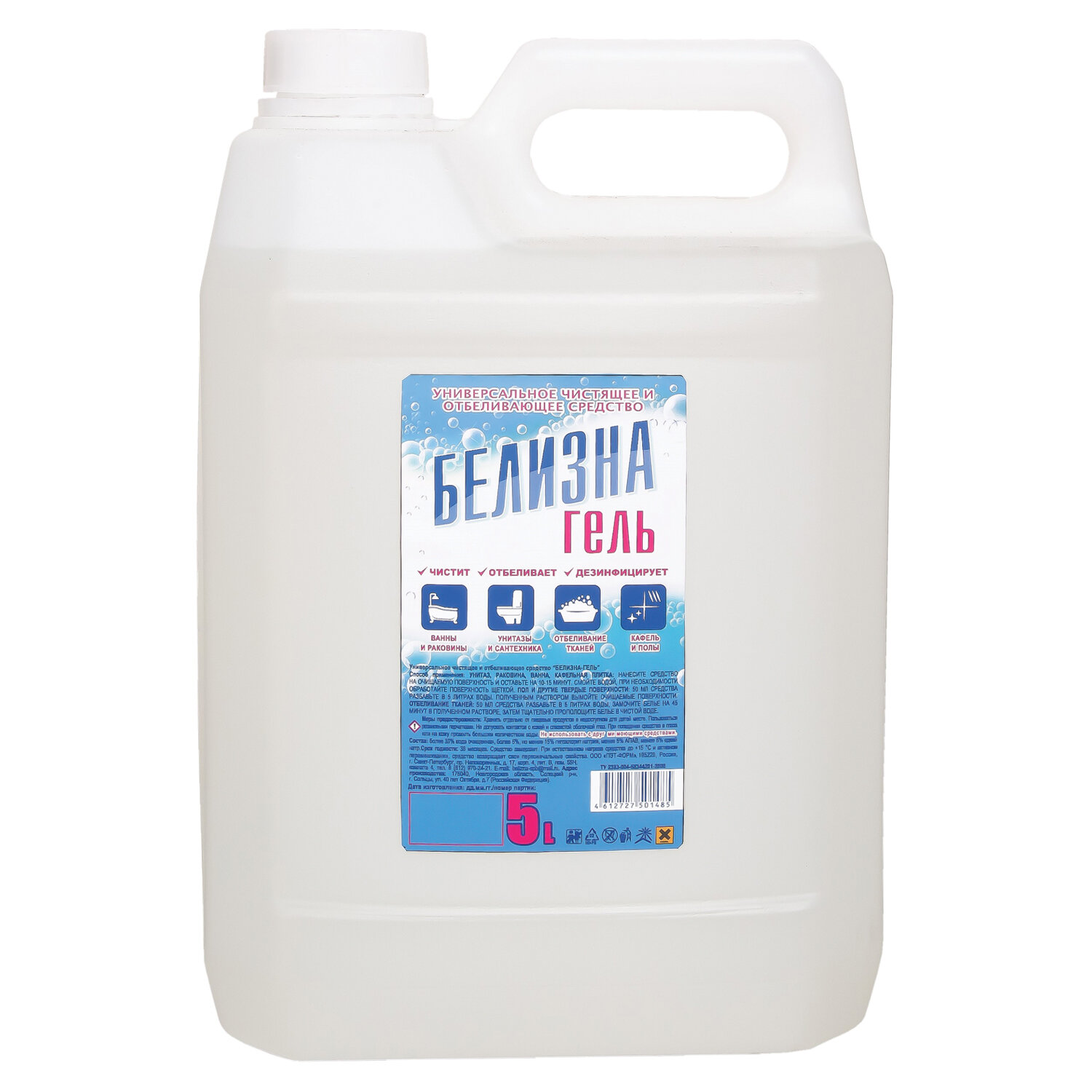 Средство для отбеливания, дезинфекции и уборки 5 л, БЕЛИЗНА-ГЕЛЬ (ПЭТ-ФОРМ)