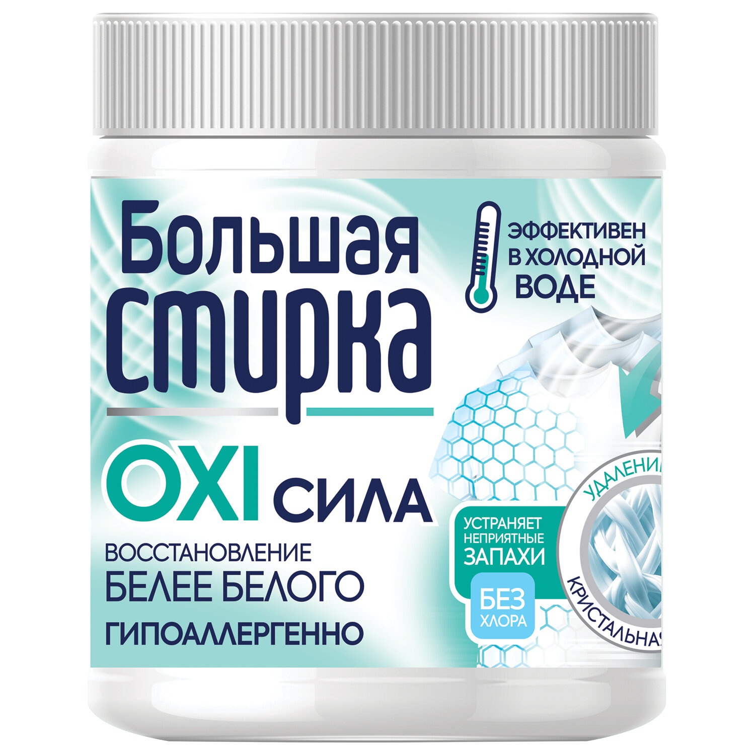 Пятновыводитель-отбеливатель кислородный для белого 400 г, БОЛЬШАЯ СТИРКА Код товара: 701240 416,98 ₽ Купить Производитель:БОЛЬШАЯ СТИРКА Кислородный пятновыводитель-отбеливатель БОЛЬШАЯ СТИРКА эффективно удаляет пятна и и неприятные запахи. Обладает антимикробным действием. Придает вещам кристальную белизну. Безопасен для всех типов тканей. Эффективны даже в холодной воде. Гипоалергенный. Форма продукта – порошок. Способ применения: • Машинная стирка, стирка с отбеливанием: добавить в кювету к средству для стирки на 3-4 кг белья и 10 л воды 3 мерные ложки (60 г) отбеливателя – для легких загрязнений, 4 мерные ложки (80 г) – для сильных загрязнений. Стирать согласно инструкции к стиральной машине и рекомендациям на ярлыках белья. Расход средства для стирки может быть уменьшен в 2 раза. • Замачивание, отбеливание и выведение пятен: добавить 3 мерные ложки (60 г) средства на 10 л воды при температуре 20-60 °C. Время замачивания – 30-60 минут. После замачивания стирайте как обычно. Для трудноудаляемых загрязнений и пятен расход отбеливателя увеличить в 1,5-2 раза. Вместимость мерной ложки – 20 г.Производство: РоссияТип средства: пятновыводительНазначение: для белого бельяОбъем: 400 мл/гВид средства: порошокБез хлора: даСерия: Oxi ActionДозатор: нетВид упаковки: банкаСрок годности: 24 месВес: 470 грРазмер упаковки: 9.2 × 11.5 × 9.2 смОбъём: 0.0014 м3Промежуточная упаковка: 6 штТранспортная упаковка: 6 штШтрих-код: 4602984021741 Файлы Сертификат-1.jpg Сертификат-2.jpg Сертификат-3.jpg Сертификат-4.jpg