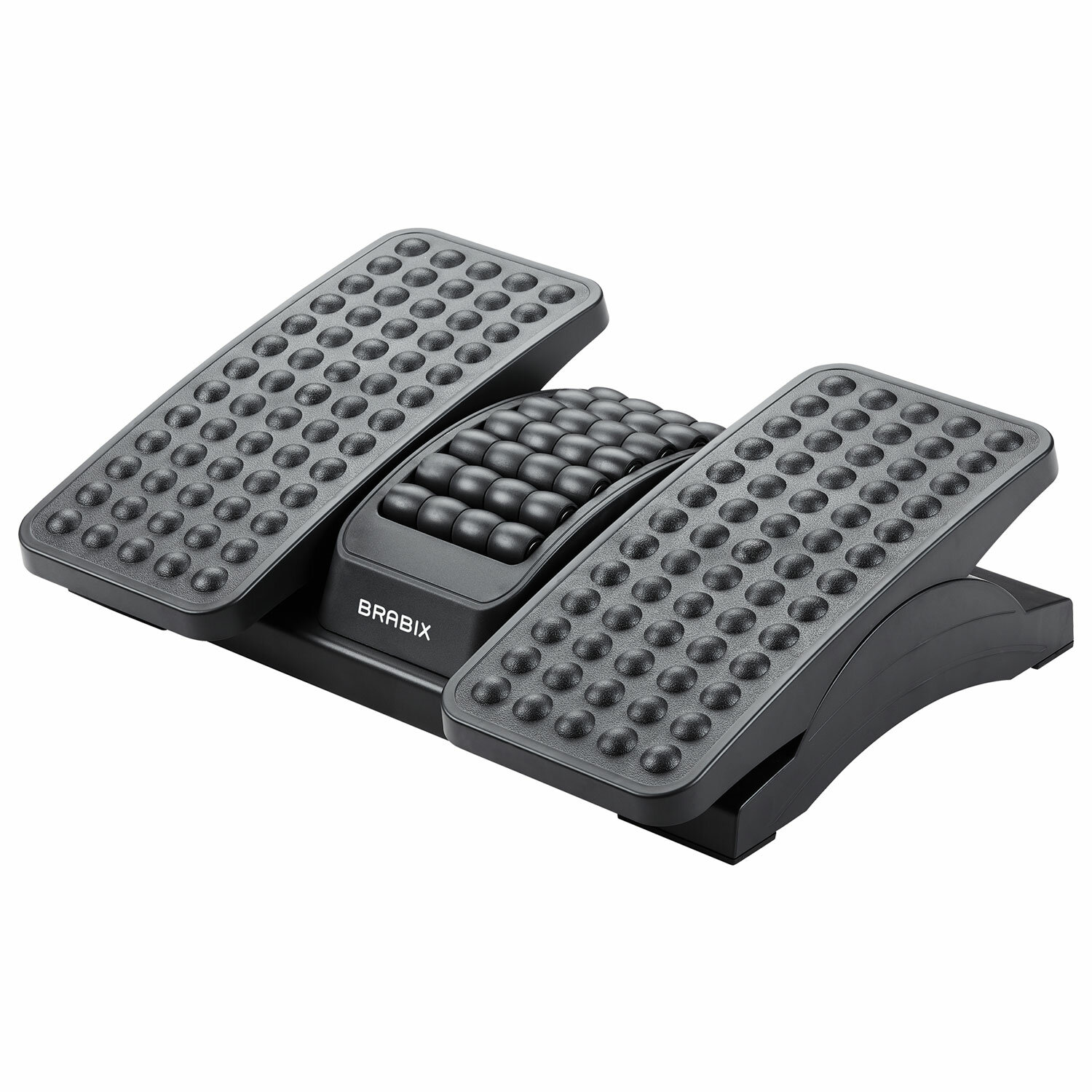 Подставка для ног BRABIX "Ultra 5" 43х32 см, массажер, регулировка угла наклона, 2 платформы Код товара: 533040 2 082,72 ₽ Купить Производитель:BRABIX Подставка для ног из пластика с массажной поверхностью, регулируемой высотой и углом наклона идеально подходит для тех, кто проводит много времени сидя. Это отличное решение для офисных работников, студентов и всех, кто заботится о своем здоровье. Представляет собой устойчивую и прочную пластиковую конструкцию с двумя платформами общим размером 43х32 см. Возможна установка угла наклона от 0 до 25°. Платформы регулируется независимо друг от друга. В комплекте есть дополнительные ножки, увеличивающие высоту подставки на 2,5 см.Производство: КитайДлина: 32 смШирина: 43.2 смВысота: 10.5 смВарианты регулировки: угол наклона (0-25°)Количество платформ: 2 шт.Противоскользящее основание: даФактура платформы: рифлёная с массажными роликамиСерия: UltraМатериал: пластикЦвет: черныйТип упаковки: фирменная картонная коробкаВес: 2,11 кгРазмер упаковки: 11 × 43.8 × 32.9 смОбъём: 0.0183 м3Промежуточная упаковка: 5 штТранспортная упаковка: 5 штШтрих-код: 4606224454665 Сертификат-1.jpg Сертификат-2.jpg Сертификат-3.jpg