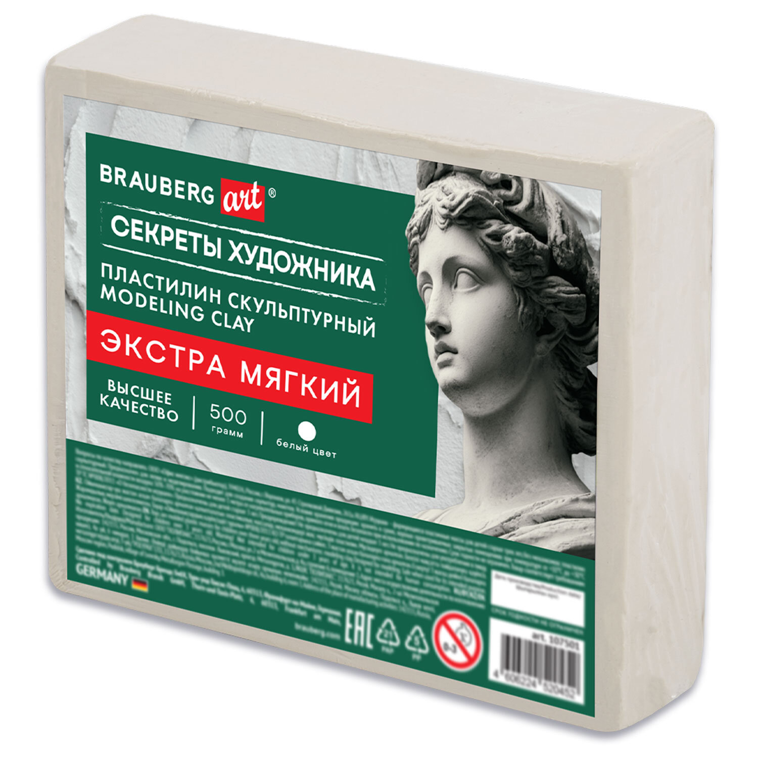Пластилин скульптурный ЭКСТРА МЯГКИЙ БЕЛЫЙ "Секреты художника", 0,5 кг, BRAUBERG ART