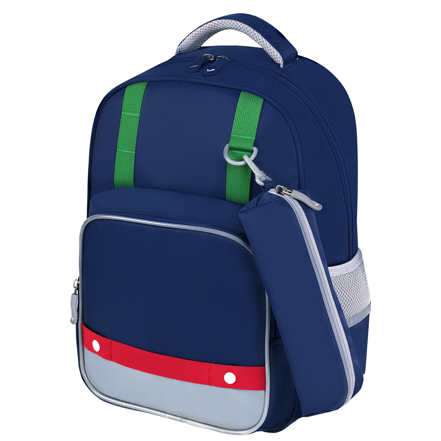 Рюкзак BRAUBERG KIDS MODE с пеналом в комплекте, 1 отделение, "Color mood", 39х28x15 см Код товара: 273126 2 082,94 ₽ Купить Производитель:BRAUBERG KIDS Школьные рюкзаки BRAUBERG KIDS MODE предназначены для учеников 7-12 лет. Рюкзаки этой серии не только вместительные и легкие, но и практичные. Рюкзак изготовлен из влагоотталкивающей нейлоновой ткани, которая легко чистится. Особая конструкция широких дышащих лямок S-образной формы с пришитием по всему верхнему краю позволяет повысить надежность и удобство этого элемента, поэтому носить рюкзак будет еще комфортнее. Удобная мягкая вентилируемая спинка с воздушными спонжевыми панелями разработана с учетом анатомических особенностей детей младшего и среднего школьного возраста. Съемные нагрудные ремешки помогают равномерно распределять нагрузку на спину. В основном отделении рюкзака можно легко и быстро разместить учебники и тетради формата А4+, а также воспользоваться прижимными разделителями. Спереди рюкзака располагается большой карман на молнии, который вмещает тетради формата А5 и прочие канцелярские принадлежности. Такая организация пространства поможет держать принадлежности в сохранности и приучить ребенка к порядку. Пенал в подарок! Рюкзак легко открывать и закрывать одной рукой с любой стороны – основное отделение имеет долговечную реверсивную молнию с двумя стильными бегунками. В боковых карманах на резинке можно разместить бутылочку, термос или зонт. Нести рюкзак будет удобно не только на плечах, но и в руке за прочную уплотненную ручку. Также имеется специальная петелька из плетеной нейлоновой нити, чтобы вешать рюкзак на крючок парты. Светоотражающие элементы рюкзака расположены спереди, на торцах и на лямках. Они необходимы для безопасности пользователя в темное время суток. Яркая этикетка расположена на передней стороне рюкзака, делая его более заметным на полке магазина, а информация в ней отражает главные потребительские свойства, помогая покупателю принять решение о покупке. Рюкзак упакован в плотный ПЭТ-пакет с замком Zip Lock с ручками, что помогает сохранить качество и товарный вид изделия при хранении и транспортировке.Производство: КитайПол ребенка: для мальчиковСерия: MODEДизайн: Color moodВозрастная группа: от 7 летОбъем: 15 лТип спинки: анатомическая, вентилируемая, формоустойчиваяНагрудный ремешок: даКоличество отделений: 1Количество карманов: 3 шт.Фронтальный карман: даБоковые карманы: даСветоотражающие элементы: даНаличие ручки для переноса: даРегулируемые лямки: даВентилируемые лямки: даМатериал спинки: спонжевые панели анатомической формыМатериал дна: полиэстерЦвет: темно-синийВысота: 39 смШирина: 28 смГлубина: 15 смДлина лямок: 76 смВес: 0.54 кгРазмер упаковки: 5.7 × 43.8 × 29.7 смОбъём: 0.0085 м3Промежуточная упаковка: 5 штТранспортная упаковка: 10 штШтрих-код: 4606224478135 Сертификат-1.jpg Сертификат-2.jpg Сертификат-3.jpg