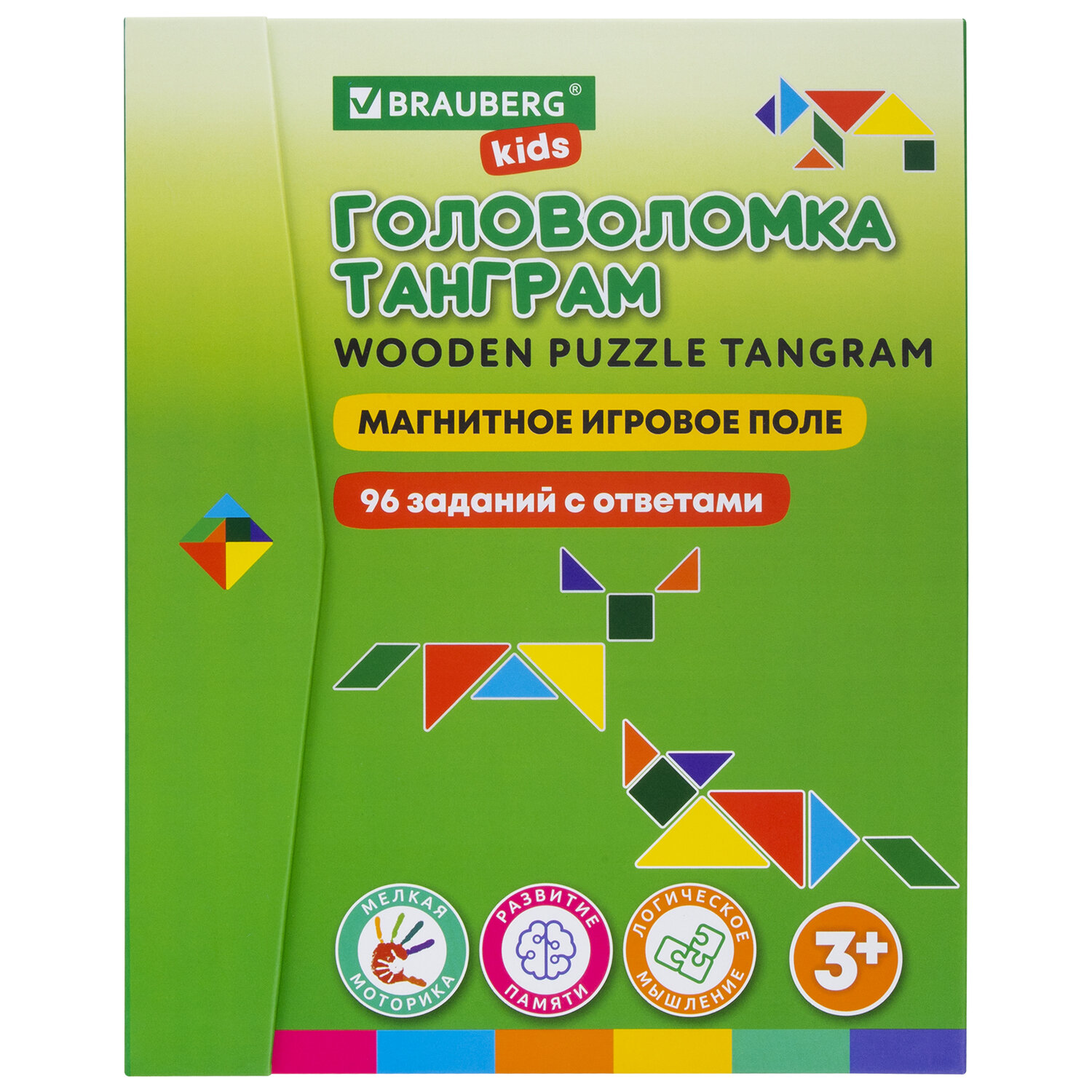 Головоломка развивающая деревянная "Танграм", на магнитах, с примерами, BRAUBERG KIDS Код товара: 665260 298,98 ₽ Купить Производитель:BRAUBERG KIDS Увлекательный игровой набор BRAUBERG KIDS – настоящая находка для маленьких и взрослых любителей головоломок. Он позволяет окунуться в мир логических испытаний и создать свои собственные уникальные фигуры, развивает фантазию и воображение. Танграм – классическая игра-головоломка, известная с древних времен. Набор состоит из 7 деревянных разноцветных геометрических фигур с магнитами, книжка с заданиями, ответами и металлической основой для сборки деталей. В книжке с заданиями представлено 96 заданий с ответами на оборотной стороне. В процессе сборки ребенок научится визуализировать, представлять и складывать картинку из разноцветных магнитных фигурок. Детям помладше можно предложить собирать танграм по ответам, ведь там видны цвета и малышу не составит труда повторить цветную картинку. Книжка-головоломка надолго увлечет вашего ребенка и поможет развить такие важные навыки, как воображение и фантазию. По примеру уже нарисованных картинок в книжке ребенок может собрать их из нескольких составных частей (деревянных магнитных фигурок). Это увлекательная настольная игра в дорогу. Стыки деталей в заданиях не видны, сразу решение непонятно, нужно перебирать варианты. Игра изготовлена из отборной древесины. Использовать ее абсолютно безопасно. Каждый элемент качественно отполирован и окрашен экологически безопасной краской на водной основе.Производство: КитайТип товара: головоломкаКоличество в комплекте: 1 шт.Возраст: 3+Степень сложности: низкаяМатериал: деревоЦвет: ассортиСерия: KIDSСюжет: Танграм магнитДлина: 0 смШирина: 16.5 смГлубина: 25 смУпаковка: термоусадкаВес: 236 грРазмер упаковки: 1.7 × 22 × 18.3 смОбъём: 0.0007 м3Промежуточная упаковка: 40 штТранспортная упаковка: 40 штШтрих-код: 4606224403939 Файлы Сертификат-1.jpg Сертификат-2.jpg Сертификат-3.jpg Сертификат-4.jpg