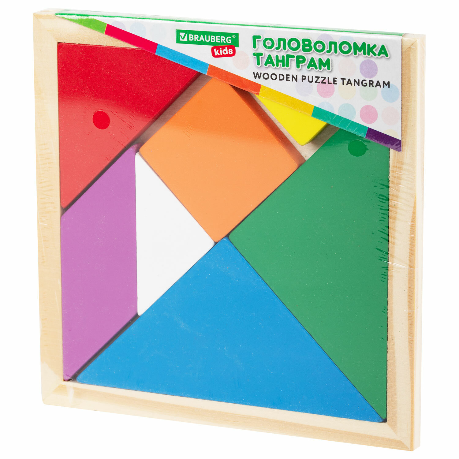 Головоломка развивающая деревянная "Танграм", 14х14 см, BRAUBERG KIDS, 665261 Код товара: 665261 167,2 ₽ Купить Производитель:BRAUBERG KIDS Увлекательный игровой набор "Танграм" BRAUBERG KIDS – настоящая находка для маленьких и взрослых любителей головоломок. Он позволяет окунуться в мир логических испытаний и создать свои собственные уникальные фигуры, развивает фантазию и воображение. Танграм – классическая игра-головоломка, известная с древних времен. Набор состоит из 7 деревянных разноцветных геометрических фигур, рамки-вкладыша и книжки с заданиями и ответами. В книжке с заданиями представлено множество разнообразных заданий с ответами на оборотной стороне. В процессе сборки ребенок научится визуализировать, представлять и складывать картинку из разноцветных геометрических фигурок. Детям помладше можно предложить собирать танграм по ответам, ведь там видны цвета и малышу не составит труда повторить цветную картинку. Книжка-головоломка надолго увлечет вашего ребенка и поможет развить такие важные навыки, как воображение и фантазию. По примеру уже нарисованных картинок в книжке ребенок может собрать их из нескольких составных частей (деревянных геометрических фигурок). Это увлекательная настольная игра в дорогу. Стыки деталей в заданиях не видны, сразу решение непонятно, нужно перебирать варианты. Игра изготовлена из отборной древесины. Использовать ее абсолютно безопасно. Каждый элемент качественно отполирован и окрашен экологически безопасной краской на водной основе.Производство: КитайТип товара: головоломкаКоличество в комплекте: 1 шт.Возраст: 3+Степень сложности: низкаяМатериал: деревоЦвет: ассортиСерия: KIDSСюжет: ТанграмДлина: 0 смШирина: 14 смГлубина: 14 смУпаковка: термоусадочная пленкаВес: 138 грРазмер упаковки: 1.1 × 14.4 × 14.2 смОбъём: 0.0003 м3Промежуточная упаковка: 80 штТранспортная упаковка: 80 штШтрих-код: 4606224403946 Файлы Сертификат-1.jpg Сертификат-2.jpg Сертификат-3.jpg Сертификат-4.jpg