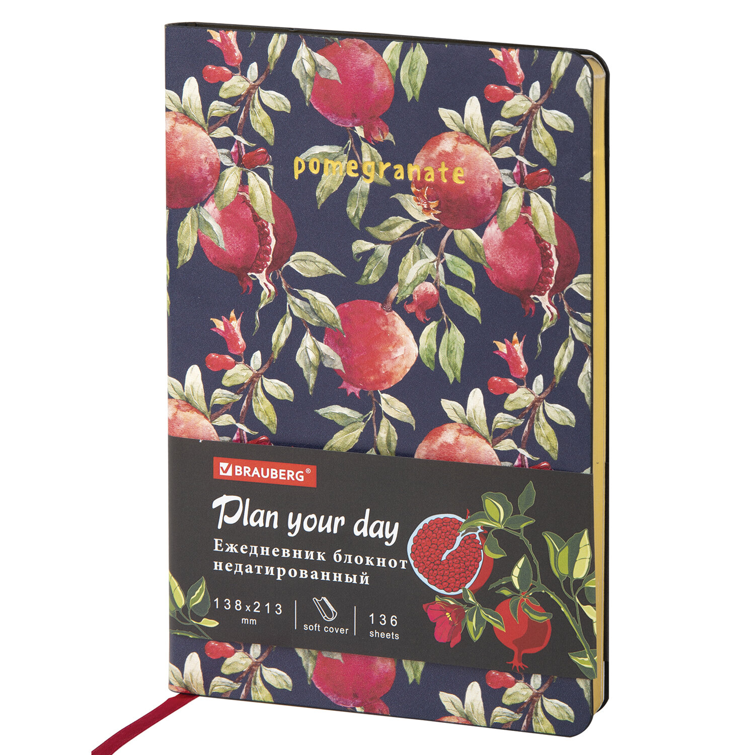 Ежедневник недатированный А5 (138х213 мм), BRAUBERG VISTA, под кожу, гибкий, 136 л., "Pomegranate" Код товара: 112022 525,36 ₽ Купить Производитель:BRAUBERG Ежедневник BRAUBERG VISTA "Pomegranate" предназначен для людей, которые ценят время и стараются каждый день проживать с максимальной пользой. Внутренний блок включает 136 листов белой бумаги плотностью 70 г/м2. Благодаря стандартному формату А5 ежедневник удобно использовать как в офисе, так и на выездных деловых встречах. Интегральная (мягкая) обложка с полноцветной печатью делает ежедневник неповторимым и запоминающимся. Срез ежедневника прокрашен, что придает ему особый шарм. Дополнением является закладка-ляссе, с помощью которой можно быстро открыть ежедневник на нужной странице. Помимо прочего ежедневник снабжен справочным материалом. В конце ежедневника есть 3 страницы для записей и заметок. Недатированный ежедневник BRAUBERG — отличный подарок к любому празднику или событию.Производство: КитайТип ежедневника: недатированныйФормат: А5Обложка: эко-кожаВид обложки: интегральнаяКоличество листов: 136 шт.Особенности: закладка-ляссеСерия: VistaДизайн: PomegranateТип застежки: нетОсновной цвет обложки: с дизайномДополнительный цвет обложки: нетЦвет среза: золотойЦвет внутреннего блока: белыйПлотность внутреннего блока: 70 г/м2Высота строки для записи: 4 ммТип крепления: сшивкаПечать блока: 2 краскиДлина: 213 ммШирина: 138 ммТолщина: 9 ммВес: 339 грРазмер упаковки: 1.4 × 21.2 × 13.5 смОбъём: 0.0006 м3Промежуточная упаковка: 20 штТранспортная упаковка: 20 штШтрих-код: 4606224285429 Сертификат-1.jpg Сертификат-2.jpg Сертификат-3.jpg