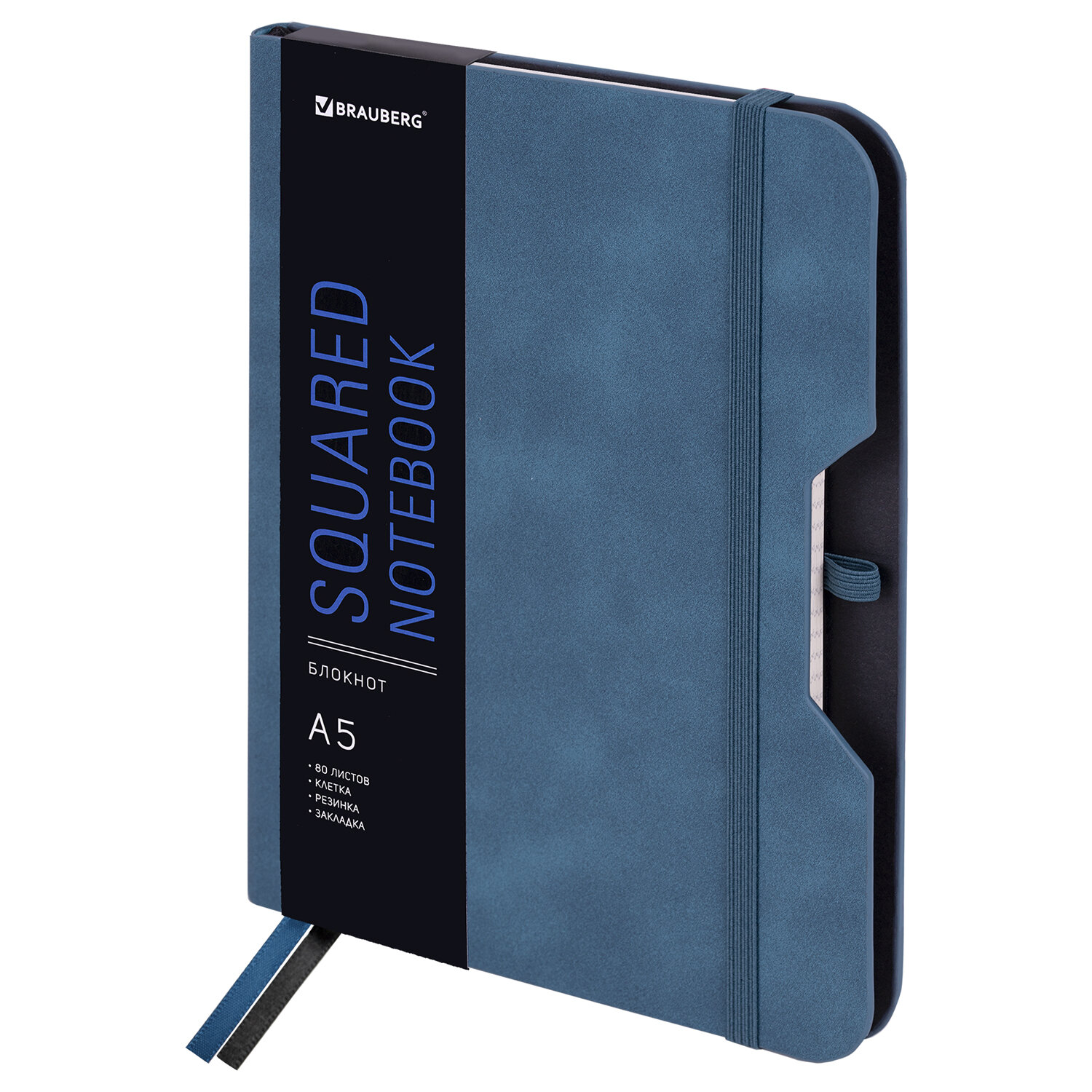 Блокнот А5 (162х218 мм), BRAUBERG "NOTE", под кожу софт-тач, с резинкой, 80 л., клетка, синий Код товара: 113438 540,79 ₽ Купить Производитель:BRAUBERG Блокнот BRAUBERG "NOTE" выполнен в оригинальном стиле с использованием приятных на ощупь материалов. Подойдет каждому современному человеку для ведения различного рода записей. Твердая обложка стилизована под "гладкую кожу". Специальное покрытие с повышенными тактильными свойствами придает обложке мягкий, бархатистый эффект. Имеет закругленные уголки, подходит для горячего тиснения и имеет резинку-фиксатор, благодаря чему не раскроется в сумке или портфеле и листы не помнутся. 80 листов позволят зафиксировать большой объем информации. Линовка блока в клетку (5х5 мм) дает возможность аккуратно заполнить цифровые значения, а также нанести чертежные зарисовки. Внутренний блок выполнен из офсета цвета слоновой кости плотностью 70 г/м2 и крепится к обложке с помощью книжного переплета. Дополнением являются две закладки-ляссе, с помощью которых при необходимости можно быстро открыть или зафиксировать нужную страницу, а также держатель для ручки. Формат блокнота А5 (162х218 мм) позволит владельцу поместить его в кейс или сумку малых габаритов.Производство: КитайТип товара: бизнес-блокнотСерия: NOTEФормат: А5Количество листов: 80Обложка: книжный переплетТекстура обложки: софт-тачОбложка подходит для тиснения: блинтового, горячего, фольгойПодходит для блинтового тиснения: даПодходит для тиснения фольгой: даПодходит для заливки полимерной смолой: даПодходит для УФ-печати: даПодходит для тампопечати: даЗастежка: резинкаВнутренний блок: офсетПлотность внутреннего блока: 70 г/м2Цвет внутреннего блока: кремовыйЛиновка блока: клеткаСкрепление блока: сшивкаЗакругленные уголки: даЗакладка-ляссе: даЦвет обложки: синийИндивидуальная упаковка: даКоличество цветов в упаковке: 1Вес: 311 грРазмер упаковки: 1.4 × 22 × 16.5 смОбъём: 0.0007 м3Промежуточная упаковка: 15 штТранспортная упаковка: 15 штШтрих-код: 4606224333410 Сертификат-1.jpg Сертификат-2.jpg Сертификат-3.jpg