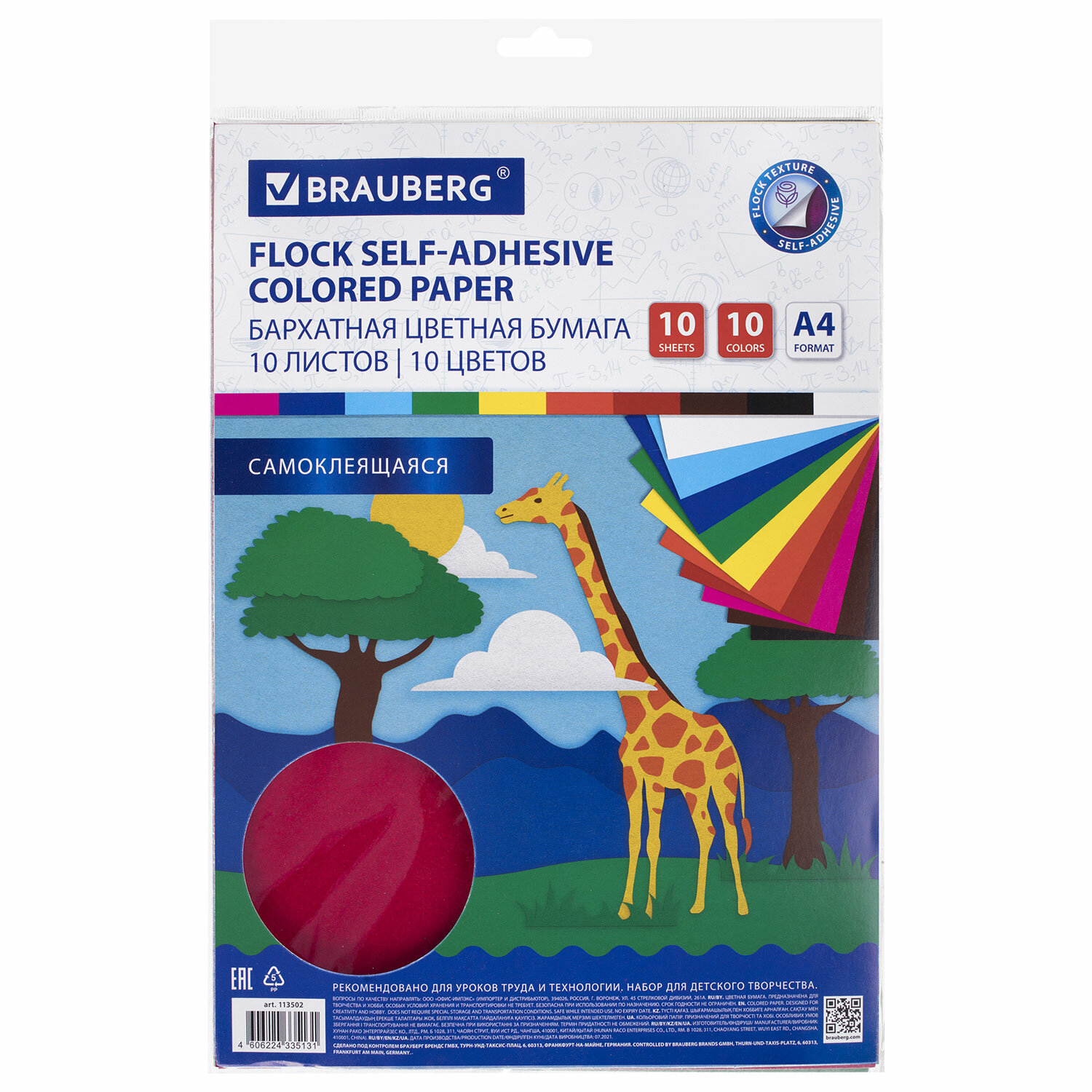 Цветная бумага А4 БАРХАТНАЯ САМОКЛЕЯЩАЯСЯ, 10 листов 10 цветов, 110 г/м2, BRAUBERG Код товара: 113502 284,31 ₽ Купить Производитель:BRAUBERG Набор цветной бархатной бумаги BRAUBERG предназначен для творчества, хобби, моделирования, оформления презентаций как любителями, так и профессионально занимающимися людьми. Набор самоклеящейся бархатной односторонней цветной бумаги плотностью 110 г/м2 включает 10 листов формата А4 (210х297 мм) в 10-ти разнообразных и насыщенных однородных цветах. Листы упакованы в полиэтиленовый пакет с липким краем, легко режутся и сгибаются.Производство: КитайТип бумаги: бархатная, односторонняя, самоклеящаясяФормат: А4Количество листов: 10Количество цветов: 10Тип товара: бумага цветная бархатнаяПлотность бумаги: 110 г/м2Прокрас бумаги: с 1 стороныСамоклеящаяся: даДизайн: ЖирафШирина: 210 ммДлина: 297 ммОбложка: мелованный картонИндивидуальная упаковка: даУпаковка: пакетВес: 172 грРазмер упаковки: 0.4 × 30.7 × 22 смОбъём: 0.0004 м3Промежуточная упаковка: 50 штТранспортная упаковка: 50 штШтрих-код: 4606224335131 Сертификат-1.jpg Сертификат-2.jpg Сертификат-3.jpg