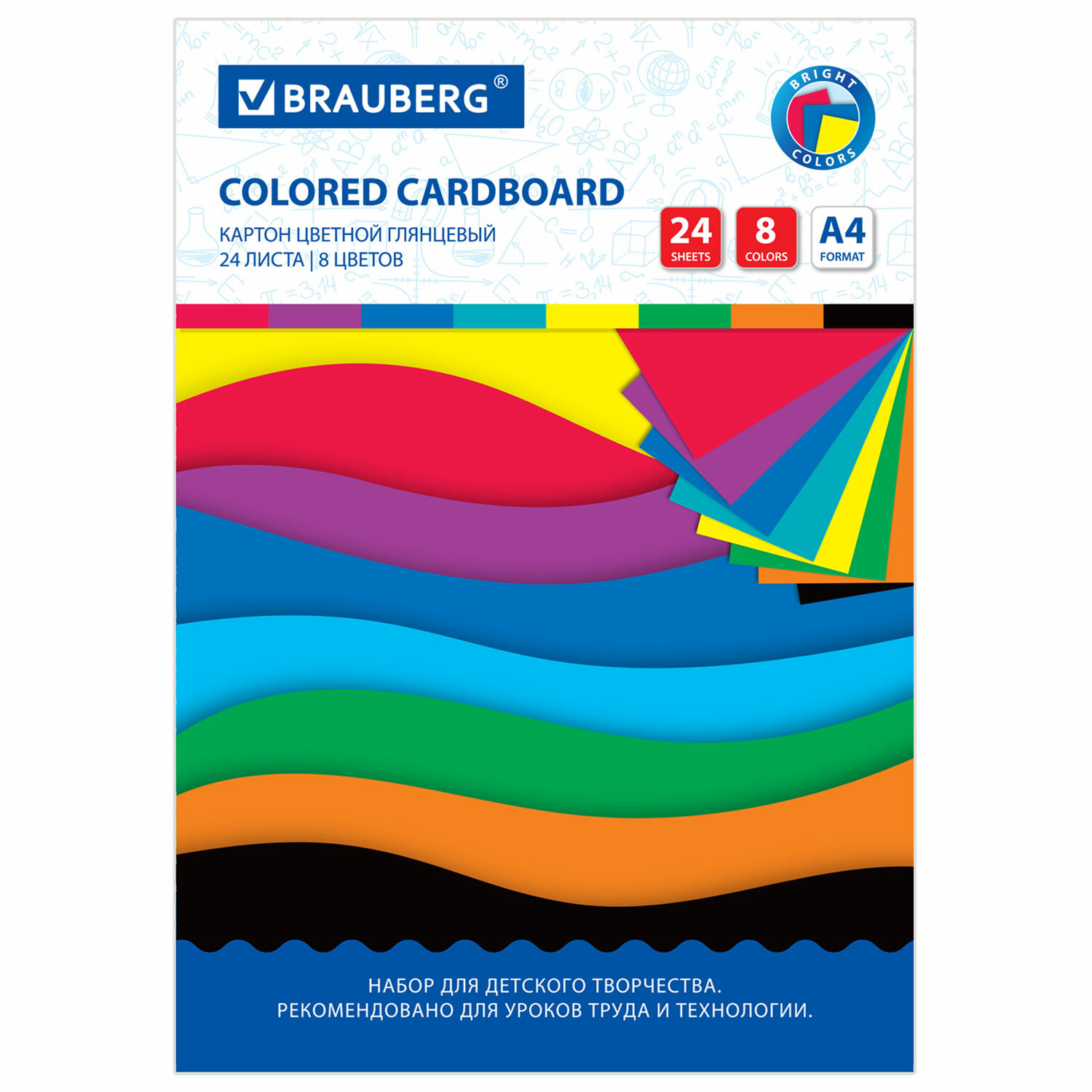Картон цветной А4 МЕЛОВАННЫЙ, 24 листа, 8 цветов, в папке, BRAUBERG, 200х290 мм, "Цвета" Код товара: 113550 168,3 ₽ Купить Производитель:BRAUBERG Набор цветного картона BRAUBERG предназначен для творчества и хобби и может использоваться детьми с трехлетнего возраста. Картон рекомендован для уроков труда и технологии. Творческая инструкция по созданию аппликации на обороте. Цветной мелованный картон BRAUBERG с улучшенной прокраской обладает плотностью 200 г/м2, имеет легкую глянцевую поверхность, благодаря чему сохраняет четкость, яркость и насыщенность оттенка на протяжении длительного времени. Поделки и аппликации из него будут яркими и красивыми, а ребенок сможет воплотить в жизнь любую творческую задумку. Картон легко режется ножницами, сгибается и клеится. Внутренний блок состоит из 24 листов формата А4 и 8 цветов. Картон упакован в красочную картонную папку на обороте которой есть творческая инструкция для создания поделки.Производство: РоссияФормат: А4Количество листов: 24Количество цветов: 8Тип картона: мелованный, с улучшенной прокраскойПлотность картона: 200 г/м2Тип товара: картон цветной мелованныйДизайн: ЦветаДлина: 200 ммШирина: 290 ммУпаковка: папкаВес: 314 грРазмер упаковки: 0.8 × 28.8 × 20.6 смОбъём: 0.0005 м3Промежуточная упаковка: 10 штТранспортная упаковка: 10 штШтрих-код: 4606224334943 Файлы Сертификат-1.jpg Сертификат-2.jpg Сертификат-3.jpg Сертификат-4.jpg Сертификат-5.jpg Сертификат-6.jpg Сертификат-7.jpg Сертификат-8.jpg