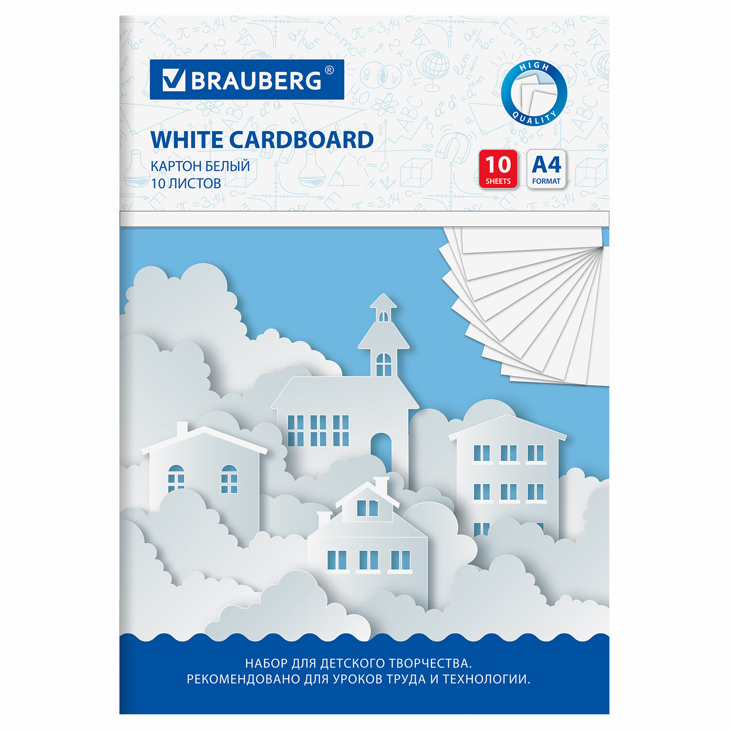 Картон белый А4 немелованный, 10 листов, в папке, BRAUBERG, 200х290 мм, "Домики" Код товара: 113564 77,97 ₽ Купить Производитель:BRAUBERG Набор белого картона BRAUBERG предназначен для творчества и хобби и может использоваться детьми с трехлетнего возраста. Картон рекомендован для уроков труда и технологии. Немелованный картон обладает плотностью 200г/м2, имеет поверхность естественного белого цвета, полученную без использования дополнительных отбеливающих химических веществ. Оборотная сторона темного цвета. Его можно использовать как для поделок, так и для рисования, а также в качестве основы для аппликаций. С помощью этого картона ребенок сможет воплотить в жизнь любую творческую задумку. В наборе 10 листов картона белого цвета формата А4 (200х290 мм). Творческая инструкция по созданию аппликации на обороте. Это товар эконом-сегмента, поэтому он отличается привлекательной ценой. Товар обладает базовым набором характеристик и простой упаковкой, при этом полностью соответствует основным требованиям потребителей.Производство: РоссияФормат: А4Количество листов: 10Плотность картона: 200 г/м2Тип товара: картон белый немелованныйВид обложки: импортный мелованный картонДизайн: ДомикиТовар относится к сегменту ЭКОНОМ: даДлина: 290 ммШирина: 200 ммУпаковка: папкаВес: 141 грРазмер упаковки: 0.4 × 28.9 × 20.7 смОбъём: 0.0002 м3Промежуточная упаковка: 50 штТранспортная упаковка: 50 штШтрих-код: 4606224335087 Сертификат-1.jpg Сертификат-2.jpg Сертификат-3.jpg