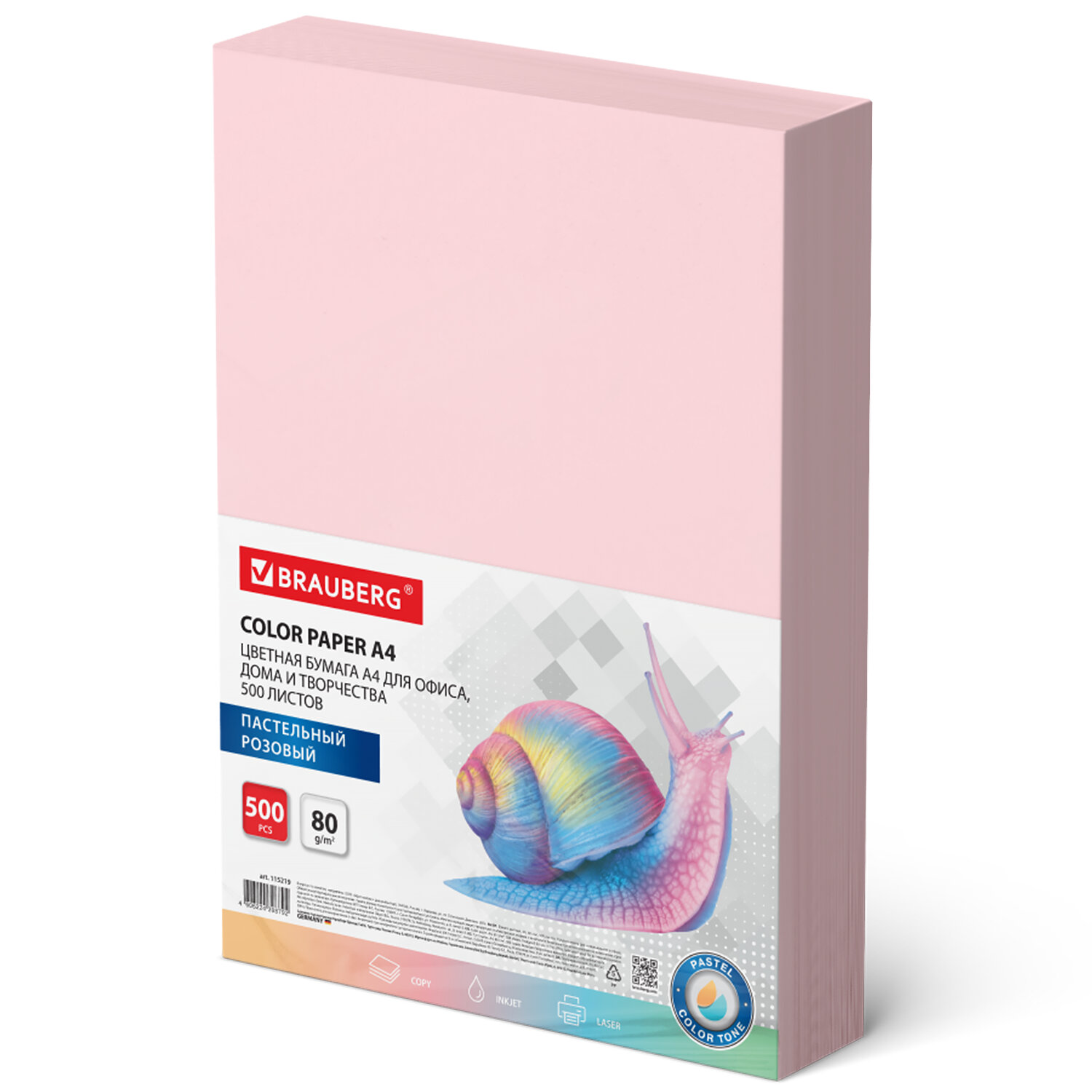 Бумага цветная BRAUBERG, А4, 80 г/м2, 500 л., пастель, розовая, для офисной техники Код товара: 115219 1 091,18 ₽ Купить Производитель:BRAUBERG Цветная бумага BRAUBERG предназначена для использования в офисе и дома. Идеально подойдет для офисной техники, оформления писем и приглашений, в качестве разделителей для архивации, а также для детского творчества (изготовления поделок и аппликаций). Упакована в пачку из 500 листов формата А4. В упаковке бумага пастельного тона розового цвета. Листы бумаги плотностью 80 г/м2 подходят для офисной техники. Поставляется в упаковке "полибэг" (Polybag), которая представляет собой прочный прозрачный полиэтиленовый конверт, надежно защищающий бумагу при транспортировке. Цветопередача монитора может искажать реальный цвет бумаги.Производство: РоссияФормат: А4Плотность: 80 г/м2Количество листов в пачке: 500Количество цветов в пачке: 1Тон: пастельныйОттенок: розовыйДвусторонняя бумага: даСерия: Standard pastelКоличество пачек на палете: 360 шт.Вес: 2,52 кгРазмер упаковки: 5.7 × 29.9 × 21 смОбъём: 0.0041 м3Промежуточная упаковка: 5 штТранспортная упаковка: 5 штШтрих-код: 4606224398792 Файлы Сертификат-1.jpg Сертификат-2.jpg Сертификат-3.jpg Сертификат-4.jpg