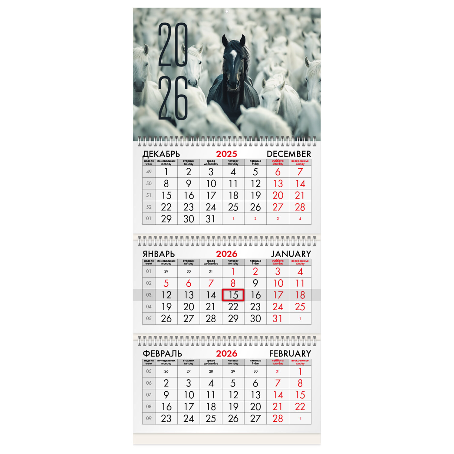 Календарь квартальный на 2026 г., 3 блока, 3 гребня, бегунок, мелованная бумага, BRAUBERG, "Лошадь" Код товара: 116791 290,25 ₽ Купить Производитель:BRAUBERG Квартальный календарь BRAUBERG "Лошадь" предназначен для делового планирования. Офисный календарь на 2026 год на 3 гребнях. Для удобства планирования состоит из 3 блоков с календарными сетками на три месяца – предыдущий, текущий и следующий. Блок календаря напечатан на мелованной бумаге плотностью 80 г/м2. Подложка изготовлена из мелованного картона плотностью 235 г/м2. Курсор-бегунок выделяет текущую дату. Вертикальное расположение. Размер – 29,5х68,2 см. Поставляется в индивидуальной упаковке (полибег) с европодвесом и с прокладкой из гофрокартона, что создает дополнительную защиту товару.Производство: КитайТип календаря: квартальный на 3 гребняхГод: 2026Тип скрепления: гребеньРазмер: 29,5х68,2 смВнутренний блок: мелованная бумагаПлотность внутреннего блока: 80 г/м2Подложка: мелованный картонПлотность подложки: 235 г/м2Курсор: даПикколо: даДизайн: Благородная лошадьКалендарная сетка: с разбивкой на 3 месяцаИндивидуальная упаковка: даВес: 205 грРазмер упаковки: 1.5 × 30 × 21.6 смОбъём: 0.0008 м3Промежуточная упаковка: 50 штТранспортная упаковка: 50 штШтрих-код: 4606224479392 Файлы Сертификат-1.jpg Сертификат-2.jpg Сертификат-3.jpg Сертификат-4.jpg Сертификат-5.jpg Сертификат-6.jpg Сертификат-7.jpg Сертификат-8.jpg Сертификат-9.jpg Сертификат-10.jpg Сертификат-11.jpg Сертификат-12.jpg Сертификат-13.jpg Сертификат-14.jpg Сертификат-15.jpg Сертификат-16.jpg Сертификат-17.jpg Сертификат-18.jpg Сертификат-19.jpg Сертификат-20.jpg Сертификат-21.jpg Сертификат-22.jpg Сертификат-23.jpg Сертификат-24.jpg Сертификат-25.jpg Сертификат-26.jpg