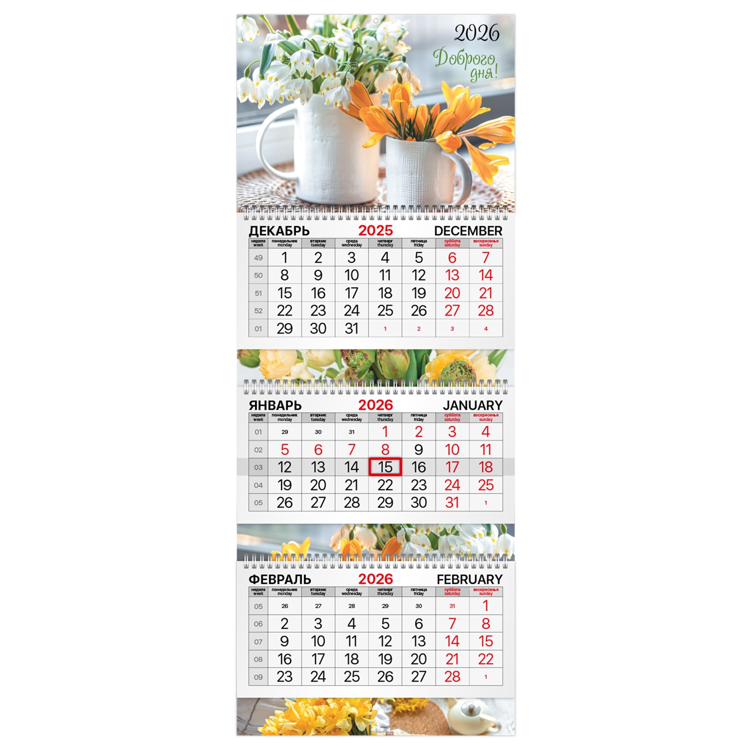 Календарь квартальный 2026 г., 3 блока, 3 гребня, бегунок, мелованная бумага, BRAUBERG EXTRA, "Весенние цветы" Код товара: 116820 290,16 ₽ Купить Производитель:BRAUBERG Квартальный календарь BRAUBERG EXTRA "Весенние цветы" предназначен для делового планирования. Офисный календарь на 2026 год на 3 гребнях. Для удобства планирования состоит из 3 блоков с календарными сетками на три месяца – предыдущий, текущий и следующий. Курсор-бегунок выделяет текущую дату. Блок календаря напечатан на мелованной бумаге плотностью 80 г/м2. Подложка изготовлена из мелованного картона плотностью 250 г/м2. Вертикальное расположение. Размер – 29,5х76 см. Поставляется в индивидуальной упаковке (полибег) с европодвесом и с прокладкой из гофрокартона, что создает дополнительную защиту товару.Производство: КитайТип календаря: квартальный на 3 гребняхГод: 2026Тип скрепления: гребеньРазмер: 29,5х76 смВнутренний блок: мелованная бумагаПлотность внутреннего блока: 80 г/м2Подложка: мелованный картонПлотность подложки: 250 г/м2Курсор: даПикколо: даДизайн: Весенние цветыКалендарная сетка: с разбивкой на 3 месяцаИндивидуальная упаковка: даВес: 216 грРазмер упаковки: 1.5 × 29.9 × 21.6 смОбъём: 0.0008 м3Промежуточная упаковка: 50 штТранспортная упаковка: 50 штШтрих-код: 4606224479682 Файлы Сертификат-1.jpg Сертификат-2.jpg Сертификат-3.jpg Сертификат-4.jpg Сертификат-5.jpg Сертификат-6.jpg Сертификат-7.jpg Сертификат-8.jpg Сертификат-9.jpg Сертификат-10.jpg Сертификат-11.jpg Сертификат-12.jpg Сертификат-13.jpg Сертификат-14.jpg Сертификат-15.jpg Сертификат-16.jpg Сертификат-17.jpg Сертификат-18.jpg Сертификат-19.jpg Сертификат-20.jpg Сертификат-21.jpg Сертификат-22.jpg Сертификат-23.jpg Сертификат-24.jpg Сертификат-25.jpg Сертификат-26.jpg