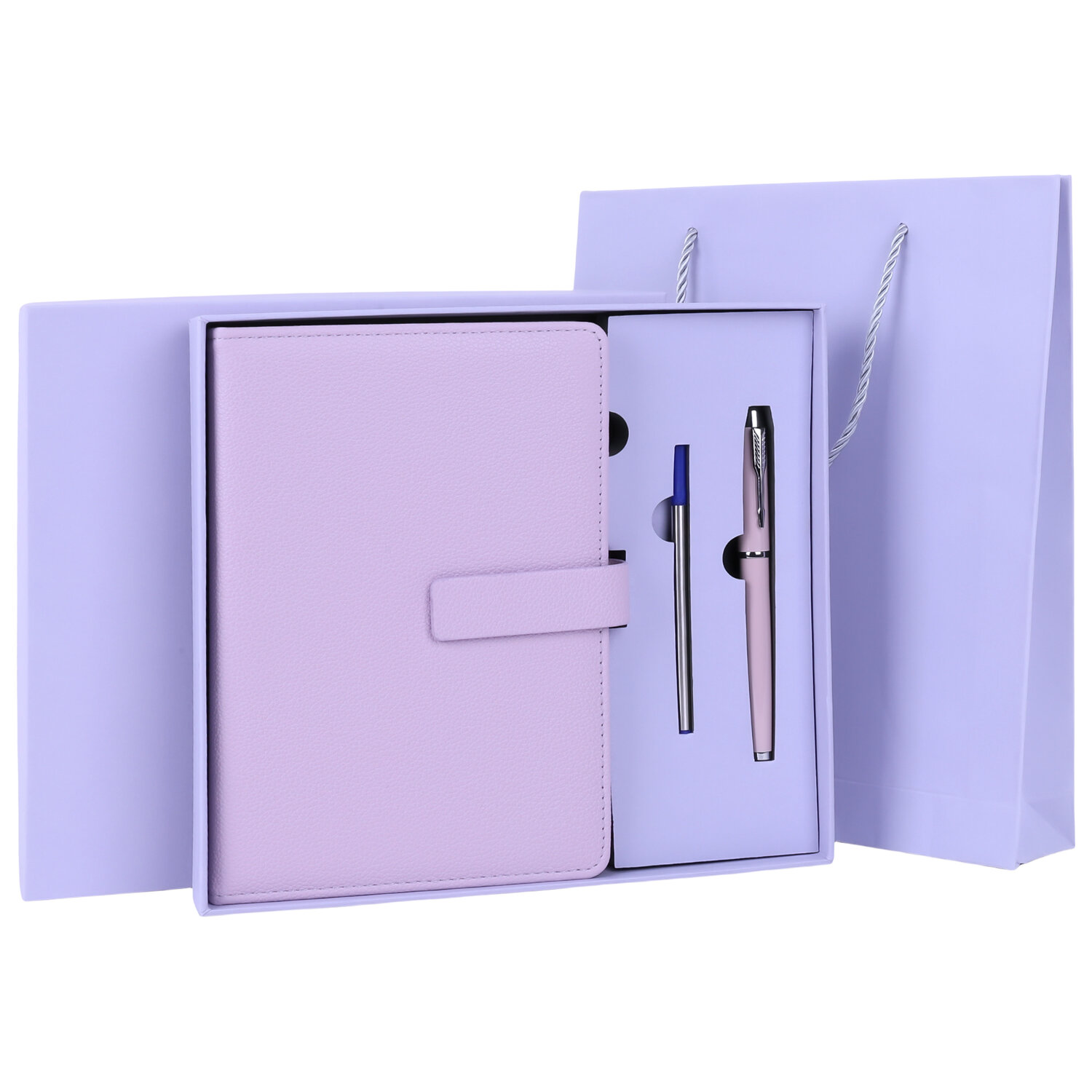 Ежедневник в подарочном наборе 5 в 1, А5, 145x212 мм, BRAUBERG "President", под кожу, 160 листов, сиреневый