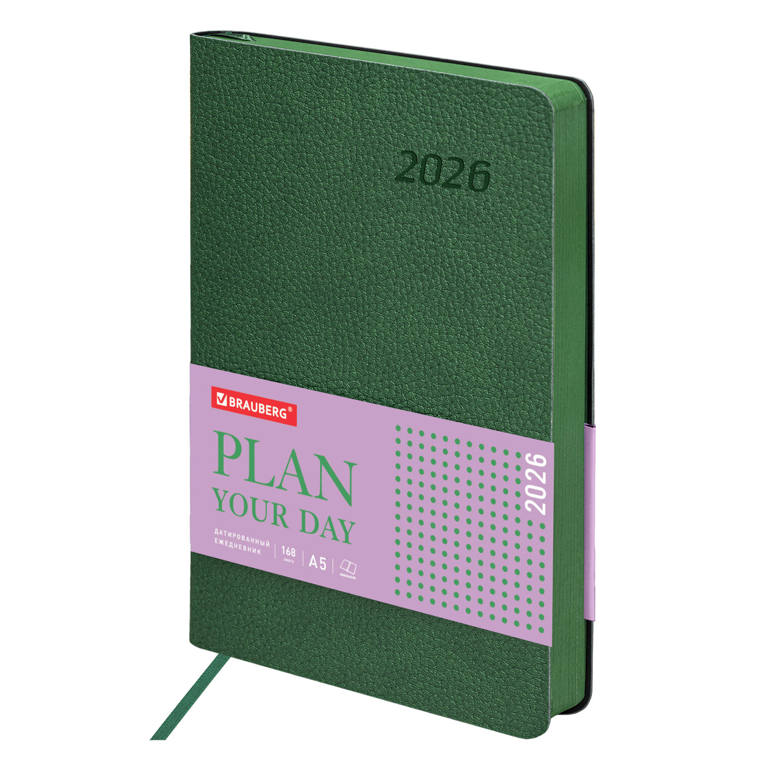 Ежедневник датированный 2026 А5 138x213 мм, BRAUBERG "Stylish", под кожу, гибкий, зеленый Код товара: 117102 457,24 ₽ Купить Производитель:BRAUBERG Датированный ежедневник BRAUBERG "Stylish" с мягкой интегральной обложкой под фактурную кожу и прокрасом среза в цвет обложки – стильное и компактное решение для эффективного планирования и создания имиджа пунктуального человека. Внутренний блок включает 168 листов тонированной бумаги плотностью 70 г/м2. Каждая страничка имеет перфорированный угол. Благодаря стандартному формату А5 (138х213 мм) ежедневник удобно использовать как в офисе, так и на выездных деловых встречах. Мягкая (интегральная) обложка стилизована под фактурную кожу насыщенного зеленого цвета. Подходит для горячего тиснения. Дополнением является закладка-ляссе, с помощью которой при необходимости можно быстро открыть ежедневник на нужной странице. Ежедневник снабжен справочным материалом. В конце есть 4 страницы для записей и заметок. Датированный ежедневник BRAUBERG "Stylish" идеально подойдет для офисных работников и людей, занимающихся бизнесом.Производство: КитайТип ежедневника: датированныйФормат: А5Обложка: под фактурную кожуВид обложки: интегральнаяКоличество листов: 168 шт.Особенности: закладка-ляссе, перфорация уголков, скругленные углы, справочная информацияСерия: StylishГод: 2026Тип застежки: нетОсновной цвет обложки: зеленыйДополнительный цвет обложки: нетЦвет среза: зеленыйЦвет внутреннего блока: кремовыйПлотность внутреннего блока: 70 г/м2Высота строки для записи: 4 ммТип крепления: сшивкаПечать блока: 2 краскиПодходит для блинтового тиснения: даПодходит для тиснения фольгой: даДлина: 213 ммШирина: 138 ммТолщина: 18 ммВес: 400 грРазмер упаковки: 2 × 21.2 × 14.1 смОбъём: 0.0007 м3Промежуточная упаковка: 20 штТранспортная упаковка: 20 штШтрих-код: 4606224487786 Файлы Сертификат-1.jpg Сертификат-2.jpg Сертификат-3.jpg Сертификат-4.jpg Сертификат-5.jpg Сертификат-6.jpg Сертификат-7.jpg Сертификат-8.jpg Сертификат-9.jpg Сертификат-10.jpg Сертификат-11.jpg Сертификат-12.jpg Сертификат-13.jpg Сертификат-14.jpg Сертификат-15.jpg Сертификат-16.jpg Сертификат-17.jpg Сертификат-18.jpg Сертификат-19.jpg Сертификат-20.jpg Сертификат-21.jpg Сертификат-22.jpg Сертификат-23.jpg Сертификат-24.jpg Сертификат-25.jpg Сертификат-26.jpg