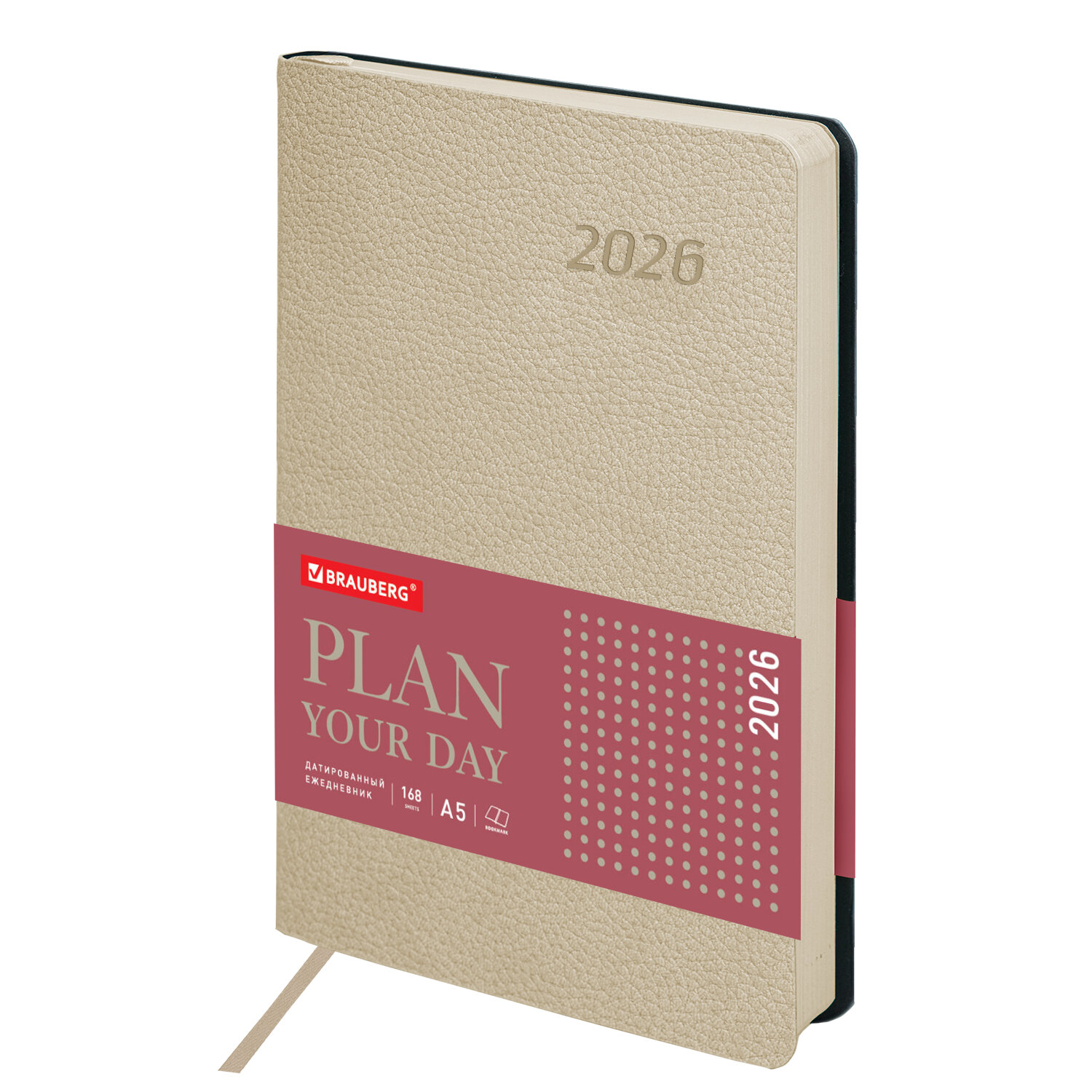 Ежедневник датированный 2026 А5 138x213 мм, BRAUBERG "Stylish", под кожу, гибкий, бежевый Код товара: 117104 457,24 ₽ Купить Производитель:BRAUBERG Датированный ежедневник BRAUBERG "Stylish" с мягкой интегральной обложкой под фактурную кожу и прокрасом среза в цвет обложки – стильное и компактное решение для эффективного планирования и создания имиджа пунктуального человека. Внутренний блок включает 168 листов тонированной бумаги плотностью 70 г/м2. Каждая страничка имеет перфорированный угол. Благодаря стандартному формату А5 (138х213 мм) ежедневник удобно использовать как в офисе, так и на выездных деловых встречах. Мягкая (интегральная) обложка стилизована под фактурную кожу бежевого цвета. Подходит для горячего тиснения. Дополнением является закладка-ляссе, с помощью которой при необходимости можно быстро открыть ежедневник на нужной странице. Ежедневник снабжен справочным материалом. В конце есть 4 страницы для записей и заметок. Датированный ежедневник BRAUBERG "Stylish" идеально подойдет для офисных работников и людей, занимающихся бизнесом.Производство: КитайТип ежедневника: датированныйФормат: А5Обложка: под фактурную кожуВид обложки: интегральнаяКоличество листов: 168 шт.Особенности: закладка-ляссе, перфорация уголков, скругленные углы, справочная информацияСерия: StylishГод: 2026Тип застежки: нетОсновной цвет обложки: бежевыйДополнительный цвет обложки: нетЦвет среза: бежевыйЦвет внутреннего блока: кремовыйПлотность внутреннего блока: 70 г/м2Высота строки для записи: 4 ммТип крепления: сшивкаПечать блока: 2 краскиПодходит для блинтового тиснения: даПодходит для тиснения фольгой: даДлина: 213 ммШирина: 138 ммТолщина: 18 ммВес: 400 грРазмер упаковки: 1.8 × 21.1 × 14.2 смОбъём: 0.0008 м3Промежуточная упаковка: 20 штТранспортная упаковка: 20 штШтрих-код: 4606224487809 Файлы Сертификат-1.jpg Сертификат-2.jpg Сертификат-3.jpg Сертификат-4.jpg Сертификат-5.jpg Сертификат-6.jpg Сертификат-7.jpg Сертификат-8.jpg Сертификат-9.jpg Сертификат-10.jpg Сертификат-11.jpg Сертификат-12.jpg Сертификат-13.jpg Сертификат-14.jpg Сертификат-15.jpg Сертификат-16.jpg Сертификат-17.jpg Сертификат-18.jpg Сертификат-19.jpg Сертификат-20.jpg Сертификат-21.jpg Сертификат-22.jpg Сертификат-23.jpg Сертификат-24.jpg Сертификат-25.jpg Сертификат-26.jpg