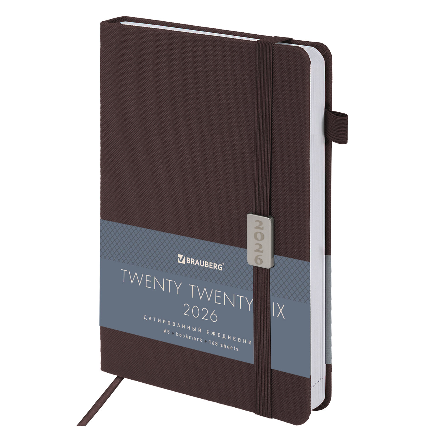 Ежедневник датированный 2026, А5, 138x213 мм, BRAUBERG "Control", под кожу, держатель для ручки, коричневый Код товара: 117122 581,59 ₽ Купить Производитель:BRAUBERG Классический ежедневник BRAUBERG "Control" создан для максимального удобства пользователя. Внутренний блок включает 168 листов белой бумаги плотностью 70 г/м2. Каждая страничка имеет перфорированный угол. Благодаря стандартному формату А5 (138х213 мм) датированный ежедневник удобно использовать как в офисе, так и на выездных деловых встречах. Жесткая книжная обложка благородного коричнево цвета стилизована под искусственную кожу с мелким рисунком. Обложка фиксируется резинкой, поэтому ежедневник не откроется в сумке или портфеле и страницы не помнутся. Материал обложки подходит для горячего тиснения. Ежедневник снабжен держателем для фиксации ручки и обширным справочным материалом. В конце имеются 4 страницы для записей и заметок. Дополнением является закладка-ляссе, с помощью которой при необходимости можно быстро открыть ежедневник на нужной странице. Датированный ежедневник BRAUBERG "Control" идеально подойдет для офисных работников и людей, занимающихся бизнесом.Производство: КитайТип ежедневника: датированныйФормат: А5Обложка: под фактурную кожуВид обложки: твердаяКоличество листов: 168 шт.Особенности: закладка-ляссе, перфорация уголков, поролоновая прослойка, скругленные углы, справочная информация, фиксатор для ручкиСерия: ControlГод: 2026Тип застежки: резинка-фиксаторОсновной цвет обложки: коричневыйДополнительный цвет обложки: нетЦвет среза: белыйЦвет внутреннего блока: белыйПлотность внутреннего блока: 70 г/м2Высота строки для записи: 4 ммТип крепления: сшивкаПечать блока: 2 краскиПодходит для блинтового тиснения: даПодходит для тиснения фольгой: даПодходит для заливки полимерной смолой: даПодходит для УФ-печати: даПодходит для тампопечати: даДлина: 213 ммШирина: 138 ммТолщина: 20 ммВес: 455 грРазмер упаковки: 2.7 × 21.6 × 14 смОбъём: 0.0009 м3Промежуточная упаковка: 20 штТранспортная упаковка: 20 штШтрих-код: 4606224487984 Файлы Сертификат-1.jpg Сертификат-2.jpg Сертификат-3.jpg Сертификат-4.jpg Сертификат-5.jpg Сертификат-6.jpg Сертификат-7.jpg Сертификат-8.jpg Сертификат-9.jpg Сертификат-10.jpg Сертификат-11.jpg Сертификат-12.jpg Сертификат-13.jpg Сертификат-14.jpg Сертификат-15.jpg Сертификат-16.jpg Сертификат-17.jpg Сертификат-18.jpg Сертификат-19.jpg Сертификат-20.jpg Сертификат-21.jpg Сертификат-22.jpg Сертификат-23.jpg Сертификат-24.jpg Сертификат-25.jpg Сертификат-26.jpg
