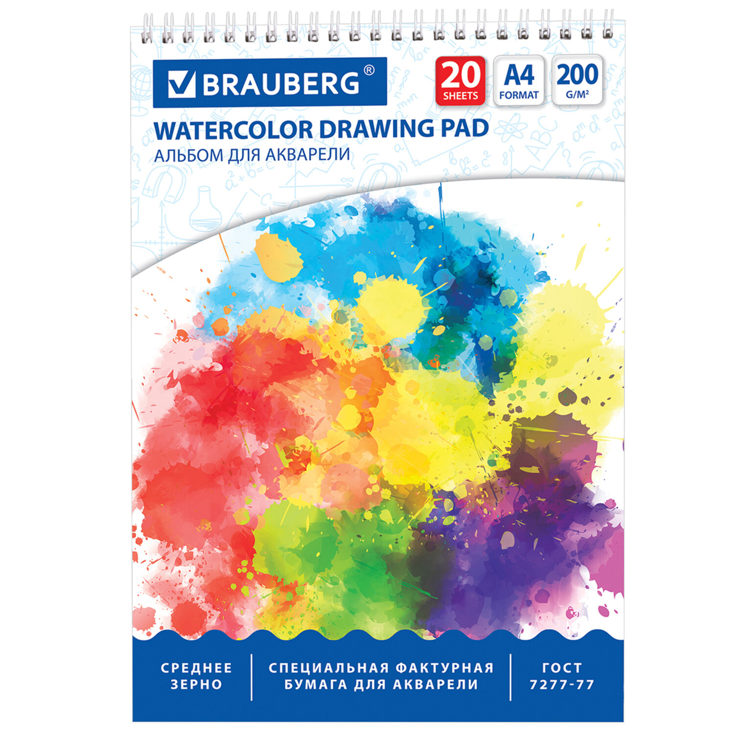 Альбом для акварели А4 20 л., бумага 200 г/м2, гребень, твердая подложка, BRAUBERG, "Краски" Код товара: 126308 196,02 ₽ Купить Производитель:BRAUBERG Альбом подходит для рисования всеми видами водорастворимых красок, также подойдет для рисования карандашами, ручками и фломастерами. Предназначен для непрофессионального и детского рисования (художественная техника – "сухая" акварель). Содержит 20 листов плотностью 200 г/м2 формата А4 (195х285 мм). Красочная обложка выполнена из мелованного картона. Скрепление листов осуществляется с помощью евроспирали. Подходит для смешанных техник рисования: красками, карандашами и фломастерами.Производство: РоссияФормат: А4Серия: Альбом для акварелиПлотность внутреннего блока: 200 г/м2Тип товара: альбом для акварелиКоличество листов: 20Внутренний блок: акварельная бумага по ГОСТ 7277-77Ширина: 195 ммДлина: 285 ммТекстура: среднее зерноЦвет внутреннего блока: белыйБелизна 100%: даОбложка: мелованный картонТип скрепления: гребеньЖесткая подложка: даДизайн обложки: СалютКоличество дизайнов в упаковке: 1 шт.Вес: 300 грРазмер упаковки: 0.8 × 29.4 × 19.8 смОбъём: 0.0007 м3Промежуточная упаковка: 5 штТранспортная упаковка: 15 штШтрих-код: 4606224105413 Файлы Сертификат-1.jpg Сертификат-2.jpg Сертификат-3.jpg Сертификат-4.jpg