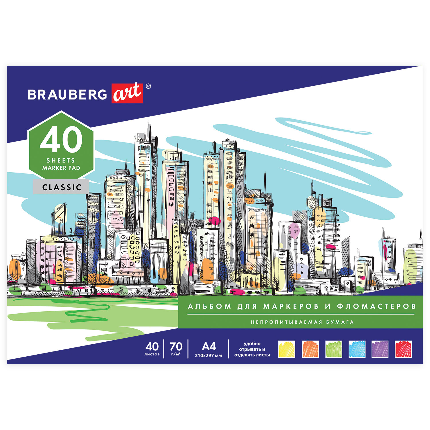 Альбом для маркеров/фломастеров, НЕПРОПИТЫВАЕМЫЙ, А4 (210х297), 70г/м, 40л, BRAUBERG ART CLASSIC Ликвидация Код товара: 128967 400,35 ₽ Купить Производитель:BRAUBERG ART Альбом для рисования скетч-маркерами, фломастерами и гелевыми ручками. Внутренний блок - специальная гладкая НЕПРОПИТЫВАЕМАЯ бумага, предотвращающая протекание чернил. Бумага светостойкая, без кислот (не подвержена старению). Привлекательная обложка выполнена из импортного мелованного картона. Внутренний блок - 40 листов специальной не пропитываемой бумаги для рисования маркерами и фломастерами плотностью 70 г/м2, т.е. 40 возможностей воплотить свою задумку! Листы удобно скреплены при помощи открытой склейки - это позволяет легко отделять листы от альбома. Задняя подложка жесткая, что позволит делать зарисовки и наброски "на весу". Удобный формат размером 210х297 мм. Позволяет фиксировать всевозможные идеи и фантазии, а также служит своеобразным простором для тренировки творческого воображения. На его страницы можно нанести эскизы будущей картины или же хендмейд изделия, что наиболее актуально для мастериц, создающих оригинальные украшения. Ведение альбома позволяет систематизировать творческие идеи, сохранить их и впоследствии реализовать. Если возникшие фантазии не зафиксировать, с большой вероятностью они скоро позабудутся.Производство: КитайТип товара: альбом для маркеров, фломастеровСерия: ClassicВид работ: для графикиКоличество листов: 40Формат: А4Ширина: 210 ммДлина: 297 ммОбложка: картоннаяВнутренний блок: бумага для маркеровЦвет внутреннего блока: белыйПлотность внутреннего блока: 70 г/м2Жесткая подложка: даТип скрепления: склейкаБез кислот: даЦвет обложки: с дизайномИндивидуальная упаковка: даВес: 260 грРазмер упаковки: 0.5 × 30.5 × 21.4 смОбъём: 0.0005 м3Промежуточная упаковка: 20 штТранспортная упаковка: 40 штШтрих-код: 4606224180014 Сертификат-1.jpg Сертификат-2.jpg Сертификат-3.jpg
