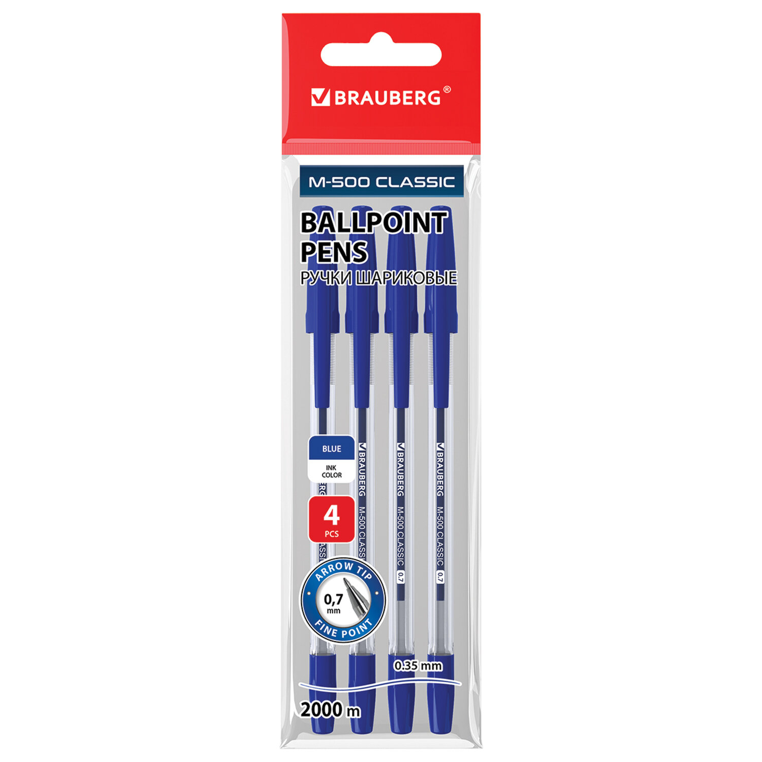 Ручки шариковые BRAUBERG "M-500 CLASSIC", НАБОР 4 шт., СИНИЕ, узел 0,7 мм, линия письма 0,35 мм Код товара: 143453 111,47 ₽ Купить Производитель:BRAUBERG Набор шариковых ручек BRAUBERG "M-500 CLASSIC" состоит из надежных и долговечных ручек для ежедневного использования. Шариковые ручки в прозрачном корпусе обладают удобной зоной захвата с рифлением, препятствующим скольжению пальцев при письме. Ручки снабжены сменным стержнем 140 мм, что позволяет увеличить срок службы. Диаметр пишущего узла 0,7 мм создает тонкую линию письма, равную 0,35 мм. Длина линии письма составляет 2000 метров: такого расхода хватит надолго. Цвет чернил - синий. В наборе 4 штуки.Производство: КитайЦвет чернил: синийКоличество в комплекте: 4 шт.Толщина линии письма: 0.35 ммДиаметр пишущего узла: 0.7 ммФорма наконечника: стандартныйДлина сменного стержня: 140 ммСерия: M-500Стиль: для офиса и учебыЭргономичная зона захвата: рифлениеЦвет корпуса: прозрачныйДлина письма: 2000 мДизайн: без дизайнаФорма корпуса: шестиграннаяПокрытие корпуса: -Упаковка: пакет с европодвесомСрок годности: 60 месВес: 29 грРазмер упаковки: 1.1 × 15.8 × 5.3 смОбъём: 0.0001 м3Промежуточная упаковка: 24 штТранспортная упаковка: 288 штШтрих-код: 4606224276649 Файлы Сертификат-1.jpg Сертификат-2.jpg Сертификат-3.jpg Сертификат-4.jpg