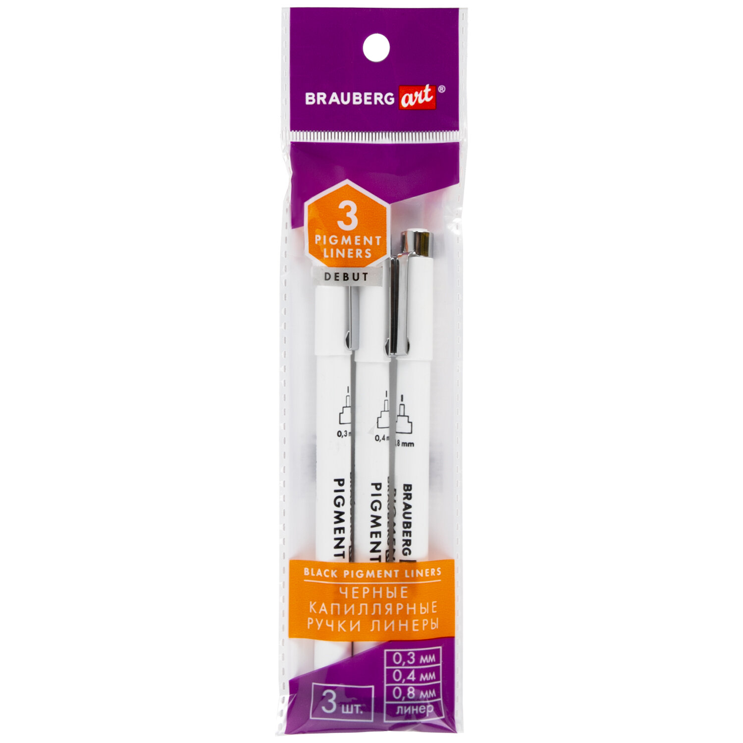 В наборе 3 черных капиллярных ручки с типом наконечника "Линер": № 0,3 / 0,4 / 0,8. Номер ручки на колпачке соответствует толщине линии письма в миллиметрах. Изготовлены с применением высококачественных чернил и наконечников. Чернила на водной основе, без кислот. Отличаются высокой светостойкостью и устойчивостью к воздействию воды. Подходят для работы в различных художественных техниках, каллиграфии и леттеринга.