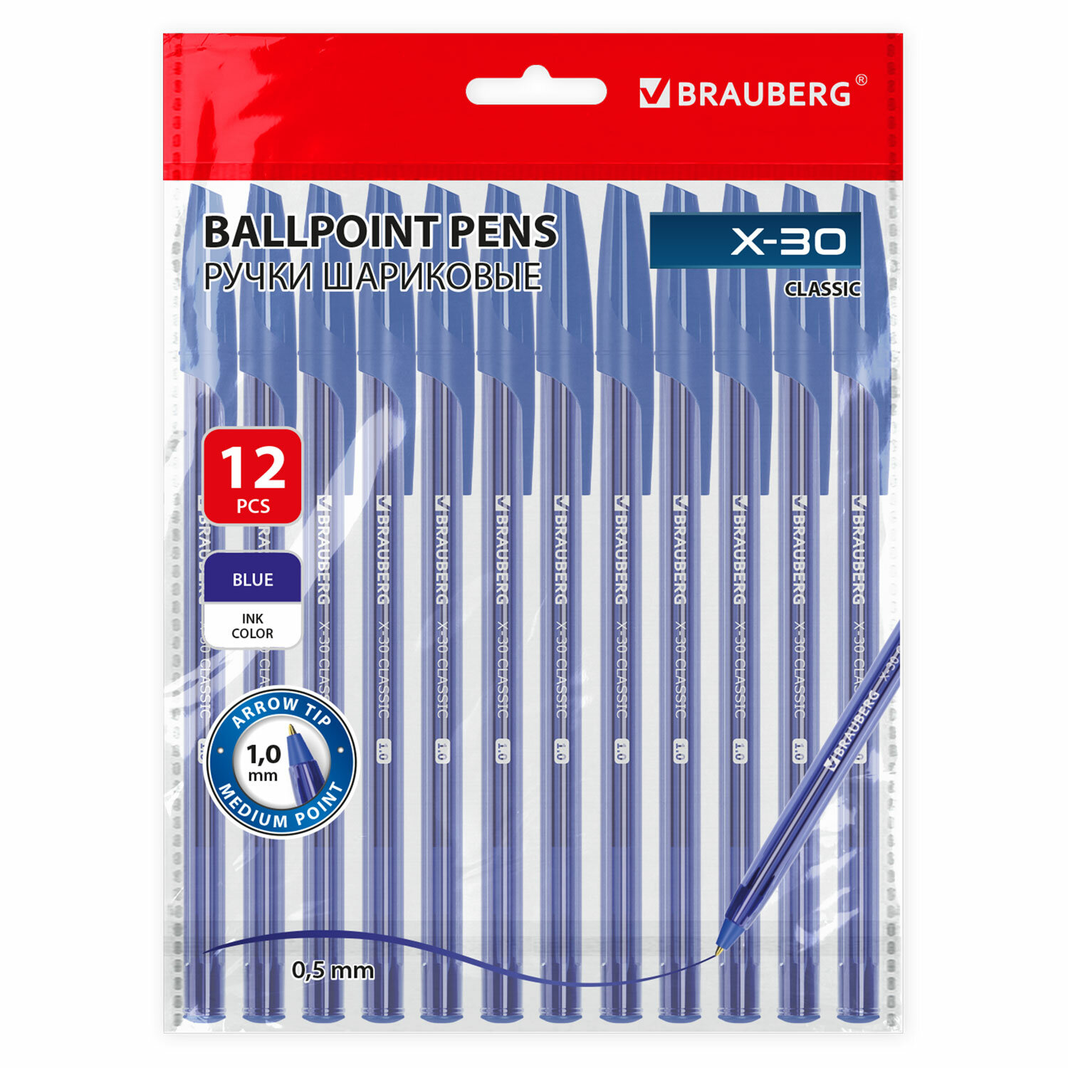 Ручки шариковые BRAUBERG X-30 CLASSIC, КОМПЛЕКТ 12 ШТ., СИНИЕ, пишущий узел 1 мм, линия письма 0,5 мм Код товара: 144332 132,39 ₽ Купить Производитель:BRAUBERG Ручка BRAUBERG X-30 CLASSIC – не просто ручка, ваш надежный партнер! Почувствуйте уверенность в каждом слове, написанном этой ручкой. Она создана для тех, кто ценит простоту, надежность и эффективность. Набор из 12 шариковых ручек круглого тонированного синего корпуса. Каждая ручка идеально ложится в руку, обеспечивая невероятное удобство даже при длительном письме. Оптимальный диаметр пишущего узла 1 мм обеспечивает аккуратную линию письма толщиной 0,5 мм. Классический цвет чернил – синий. Привычный дизайн и базовые характеристики делают ручку универсальной для школы и офиса.Производство: КитайЦвет чернил: синийКоличество в комплекте: 12 шт.Толщина линии письма: 0.5 ммДиаметр пишущего узла: 1 ммОдноразовая: даФорма наконечника: стандартныйСерия: X-30Стиль: для офиса и учебыЭргономичная зона захвата: нетЦвет корпуса: тонированныйДлина письма: 800 мДизайн: синийФорма корпуса: круглаяПокрытие корпуса: -Упаковка: блистер с подвесомСрок годности: 60 месВес: 81 грРазмер упаковки: 1.5 × 17.8 × 13.4 смОбъём: 0.0004 м3Промежуточная упаковка: 12 штТранспортная упаковка: 144 штШтрих-код: 4606224455174 Файлы Сертификат-1.jpg Сертификат-2.jpg Сертификат-3.jpg Сертификат-4.jpg Сертификат-5.jpg