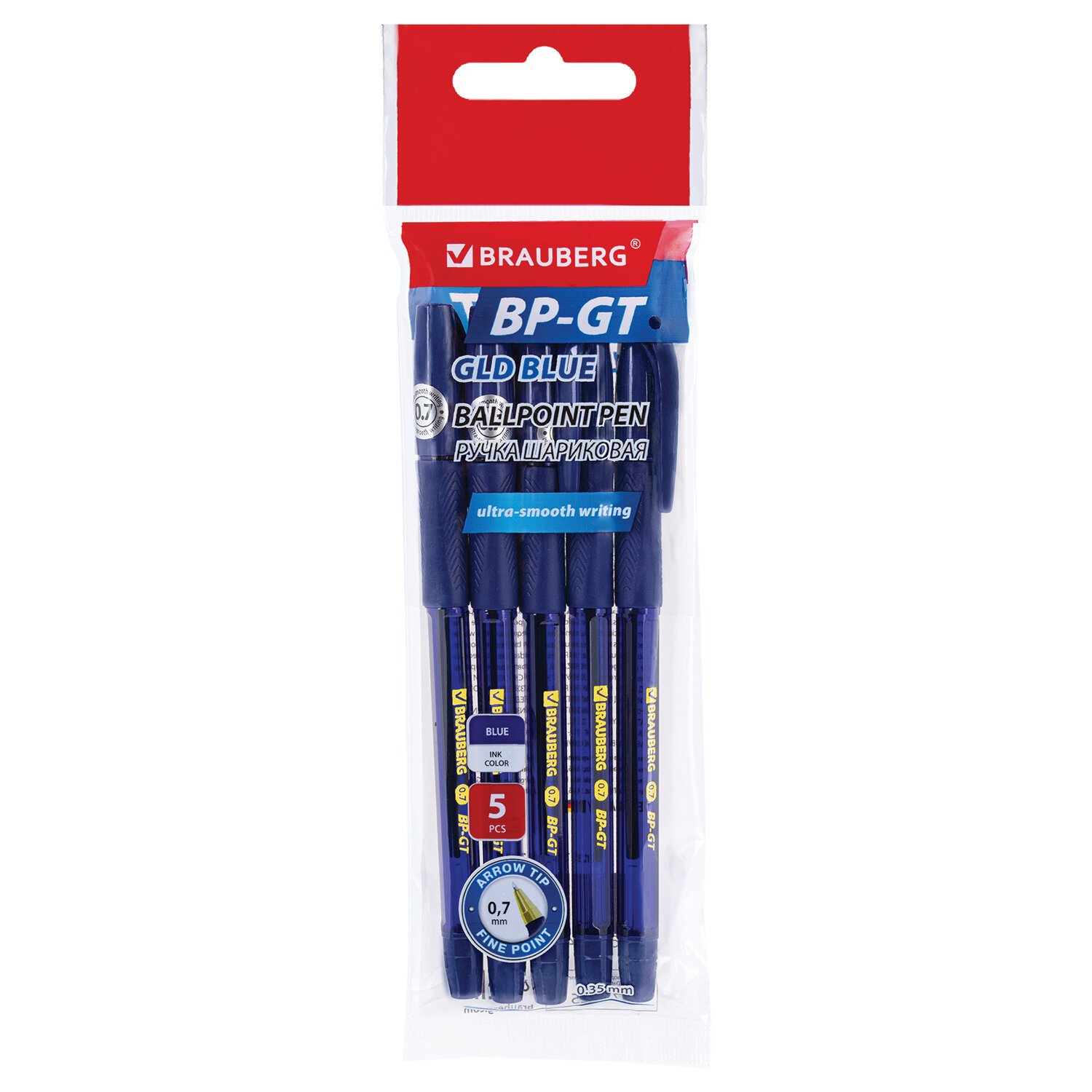 Ручки шариковые BRAUBERG BP-GT GLD BLUE, НАБОР 5 ШТУК, СИНИЕ, пишущий узел 0,7 мм, линия письма 0,35 мм