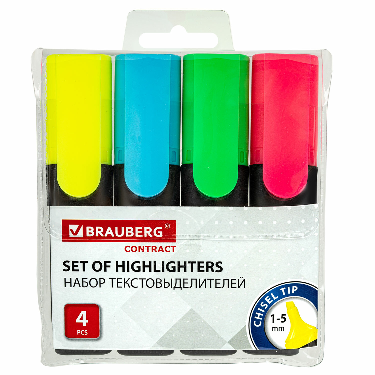 Набор текстовыделителей BRAUBERG 4 шт., АССОРТИ, "Contract", линия 1-5 мм Код товара: 150394 378,09 ₽ Купить Производитель:BRAUBERG Текстовыделители BRAUBERG "Contract" предназначены для выделения текста на бумаге любого типа, включая факс-бумагу. 4 неоновых цвета в наборе: желтый, зеленый, розовый, голубой. Скошенный наконечник имеет толщину линии письма от 1 до 5 мм. Текстовыделители обладают продленной линией письма и экономным расходом чернил. Светоустойчивые чернила не выцветают даже на открытом солнце и не заметны при передаче текста по факсу. Колпачок с клипом и соответствует цвету чернил. Форма корпуса пластиковая, диаметр которого 26 мм.Производство: КитайЦвет чернил: ассортиКоличество в комплекте: 4 шт.Форма наконечника: скошенныйСпецэффект цвета чернил : неоновыйОснова чернил: воднаяСерия: ContractМин. толщина линии письма: 1 ммМакс. толщина линии письма: 5 ммПовышенная светостойкость: даФорма корпуса: плоскаяДиаметр корпуса: 26 ммНаличие клипа: даУпаковка: ПВХ-чехол с подвесомСрок годности: 48 месВес: 105 грРазмер упаковки: 1.9 × 12.9 × 11.1 смОбъём: 0.0004 м3Промежуточная упаковка: 24 штТранспортная упаковка: 144 штШтрих-код: 4606224028675 Файлы Сертификат-1.jpg Сертификат-2.jpg Сертификат-3.jpg Сертификат-4.jpg