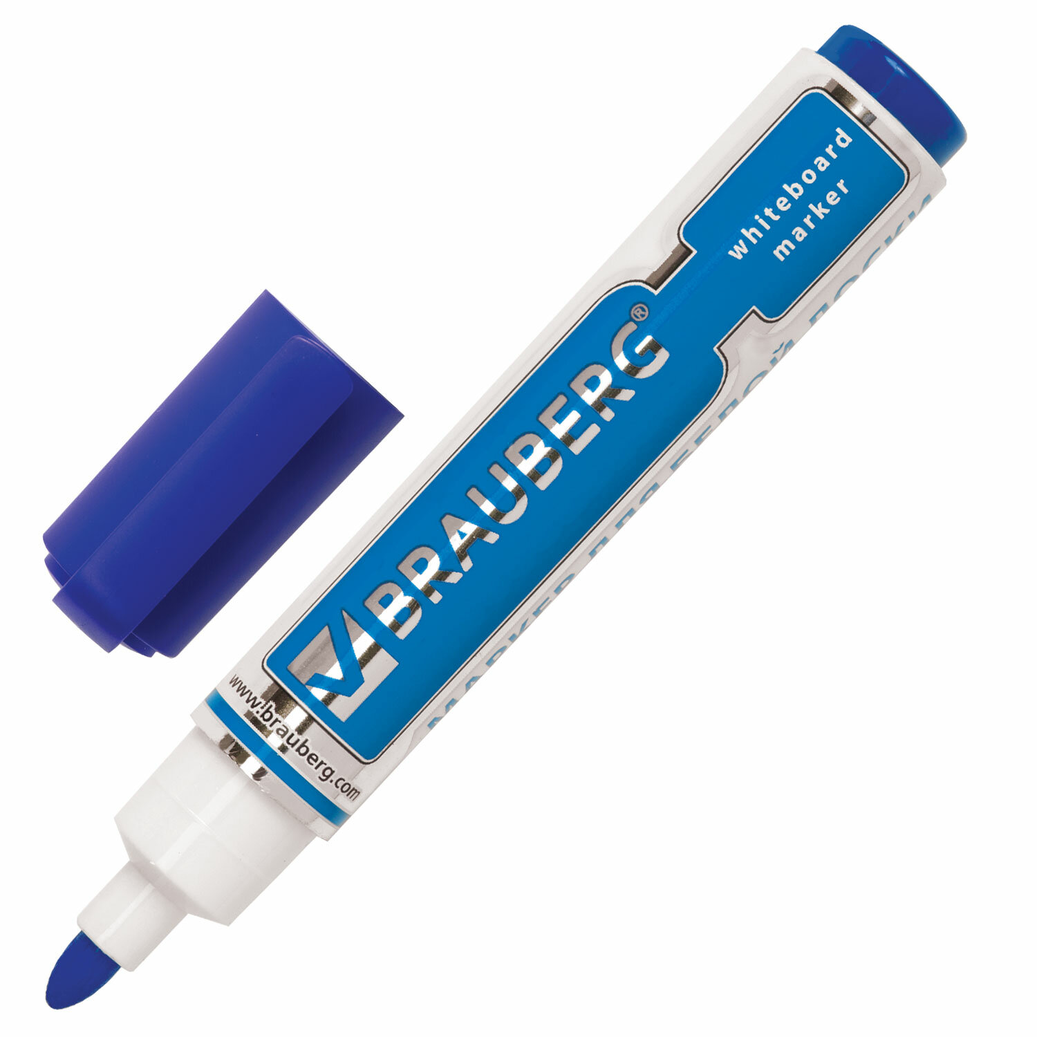Маркер стираемый для белой доски СИНИЙ, BRAUBERG "Neo", 5 мм, с клипом Код товара: 150488 81,2 ₽ Купить Производитель:BRAUBERG Высококачественный маркер BRAUBERG "NEO" для белой доски. Предназначен для письма на досках с магнитно-маркерной поверхностью. Маркер для доски синего цвета обладает круглым пластиковым корпусом диаметром 19 мм. Наконечник круглой формы обеспечивает толщину линии письма 5 мм, что позволяет писать крупным шрифтом, который будет хорошо виден. Благодаря спиртовой основе, чернила быстро высыхают и не оставляют разводов, легко стираются сухой губкой. Изделие не перезаправляется. Цвет колпачка соответствует цвету чернил.Производство: КитайЦвет: синийСерия: NeoТолщина линии письма: 5Наконечник: круглыйКоличество в комплекте: 1 шт.Основа чернил: спиртоваяЧернила стираются сухой губкой: даНаличие клипа на колпачке: даМатериал корпуса: пластикСрок годности: 48 месВес: 19 грРазмер упаковки: 1.9 × 13 × 2.2 смОбъём: 0.0001 м3Промежуточная упаковка: 12 штТранспортная упаковка: 1152 штШтрих-код: 4606224046341 Сертификат-1.jpg Сертификат-2.jpg Сертификат-3.jpg