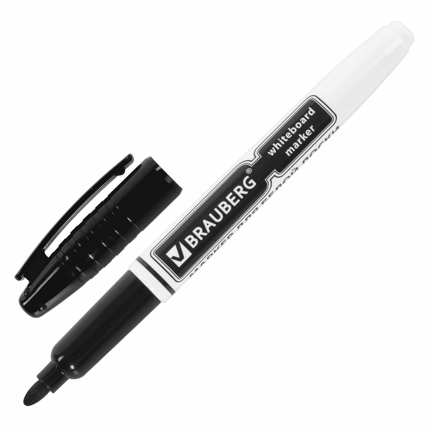 Маркер стираемый для белой доски ЧЕРНЫЙ, BRAUBERG, 4 мм, с клипом, эргономичный корпус Код товара: 150846 72,06 ₽ Купить Производитель:BRAUBERG Высококачественный маркер BRAUBERG для белой доски. Предназначен для письма на досках с магнитно-маркерной поверхностью. Маркер для доски черного цвета обладает круглым пластиковым корпусом диаметром 12 мм. Наконечник круглой формы обеспечивает толщину линии письма 4 мм, что позволяет писать крупным шрифтом, который будет хорошо виден. Благодаря спиртовой основе чернила быстро высыхают и не оставляют разводов, легко стираются сухой губкой. Изделие не перезаправляется. Цвет колпачка соответствует цвету чернил.Производство: КитайЦвет: черныйСерия: WBMТолщина линии письма: 4Наконечник: круглыйКоличество в комплекте: 1 шт.Основа чернил: спиртоваяЧернила стираются сухой губкой: даНаличие клипа на колпачке: даМатериал корпуса: пластикСрок годности: 48 месВес: 11 грРазмер упаковки: 1.3 × 13.8 × 1.7 смПромежуточная упаковка: 12 штТранспортная упаковка: 1728 штШтрих-код: 4606224123028 Сертификат-1.jpg Сертификат-2.jpg Сертификат-3.jpg