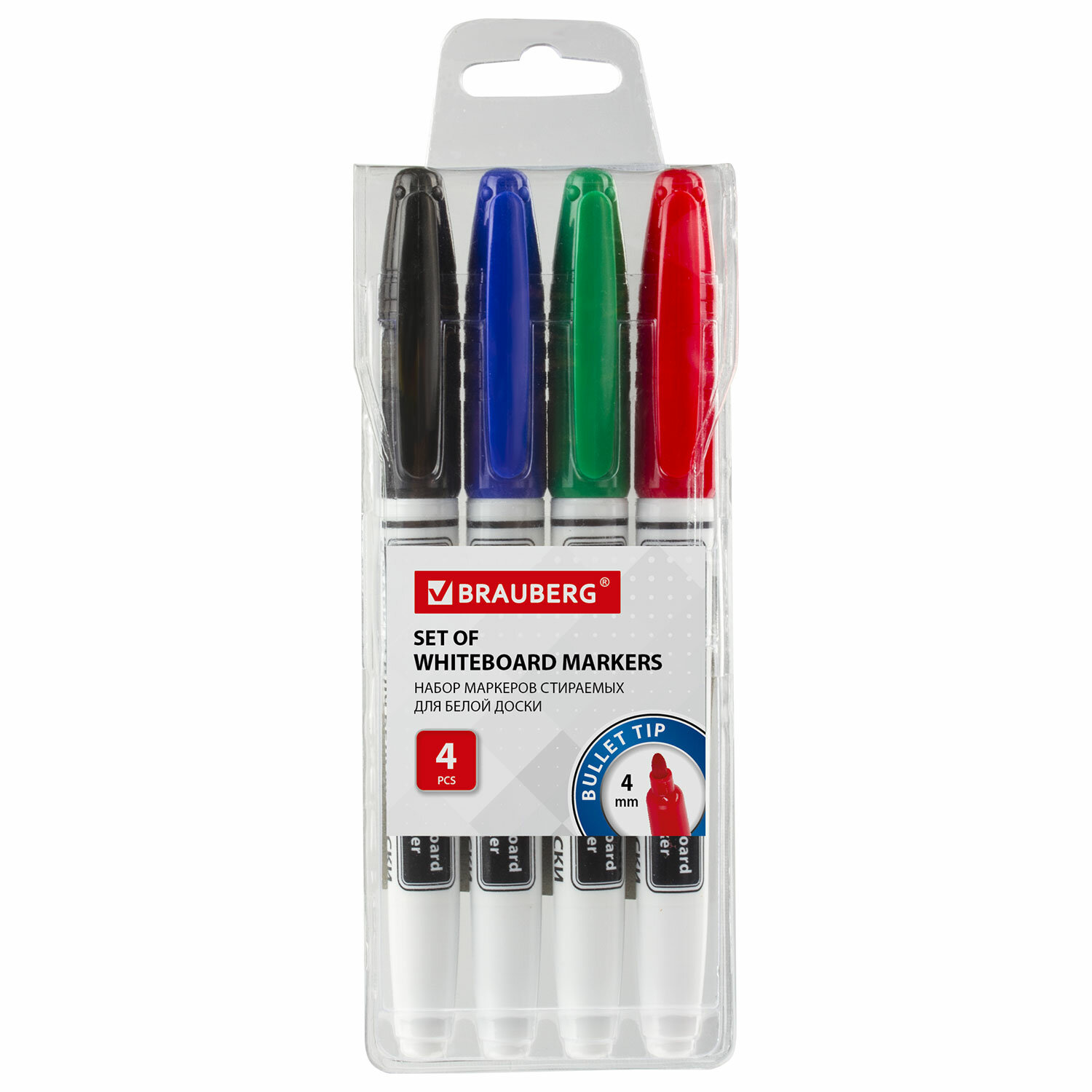 Маркеры стираемые для белой доски НАБОР 4 ЦВЕТА, BRAUBERG, 4 мм, эргономичный корпус Код товара: 150850 224,4 ₽ Купить Производитель:BRAUBERG Высококачественный набор маркеров BRAUBERG для белой доски. Предназначен для письма на досках с магнитно-маркерной поверхностью. 4 цвета в наборе: черный, красный, синий, зеленый. Круглый пластиковый корпус имеет диаметр 12 мм. Наконечник круглой формы обеспечивает толщину линии письма 4 мм, что позволяет писать крупным шрифтом, который будет хорошо виден. Благодаря спиртовой основе чернила быстро высыхают и не оставляют разводов, легко стираются сухой губкой. Изделие не перезаправляется. Цвет колпачка соответствует цвету чернил.Производство: КитайЦвет: ассортиСерия: WBMТолщина линии письма: 4Наконечник: круглыйКоличество в комплекте: 4 шт.Основа чернил: спиртоваяЧернила стираются сухой губкой: даНаличие клипа на колпачке: даМатериал корпуса: пластикСрок годности: 48 месВес: 49 грРазмер упаковки: 1.8 × 13.9 × 5.7 смОбъём: 0.0002 м3Промежуточная упаковка: 24 штТранспортная упаковка: 192 штШтрих-код: 4606224123066 Сертификат-1.jpg Сертификат-2.jpg Сертификат-3.jpg