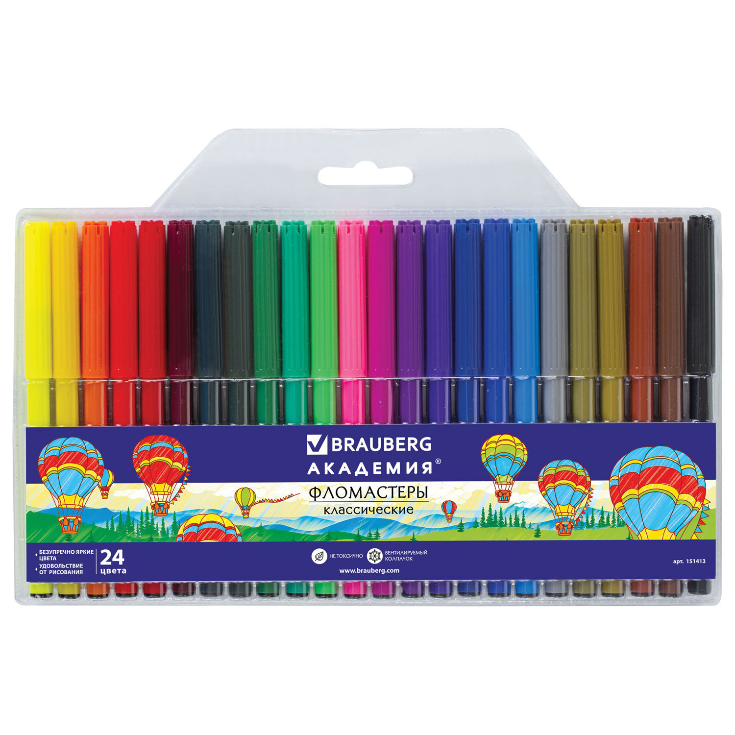 Фломастеры BRAUBERG "АКАДЕМИЯ", 24 цвета, вентилируемый колпачок, ПВХ упаковка Код товара: 151413 226,71 ₽ Купить Производитель:BRAUBERG Рисование фломастерами BRAUBERG "Академия" способствует развитию воображения, мелкой моторики рук у детей, координации движений кистей и пальцев и повышает способность концентрироваться и фокусировать внимание. Обладают яркими насыщенными цветами в количестве 24 штук. Удобная круглая форма корпуса, длина которого 139 мм, а диаметр - 8,5 мм. Благодаря толщине линии письма 1 мм и диаметру пишущего узла 2,1 мм процесс раскрашивания становится легким. Длина письма составляет 600 м: такого расхода хватит надолго. Фломастеры изготовлены на водной основе, поэтому они безопасны и легко смываются с большинства материалов и кожи. Наконечник, устойчивый к продавливанию, не проваливается внутрь корпуса и не деформируется даже при сильном нажатии. Полипропиленовый корпус значительно продлевает срок службы фломастеров. Колпачок имеет специальные прорези для вентиляции, которые способствуют прохождению воздуха при попадании в дыхательные пути малыша. Рекомендованы для детей от 3-х лет.Производство: КитайКоличество цветов: 24Форма корпуса: круглаяЭффект чернил: без эффектаТип чернил: легкосмываемыеСерия: АкадемияШирина линии письма: 1 ммПишущий узел: 2.1 ммДлина письма: 600 мДлина корпуса: 139 ммДиаметр корпуса: 8.5 ммВентилируемый колпачок: даЗаблокированный пишущий узел: даУпаковка: ПВХ-конверт с европодвесомСрок годности: 48 месВес: 158 грРазмер упаковки: 1 × 25.6 × 14.8 смОбъём: 0.0006 м3Промежуточная упаковка: 12 штТранспортная упаковка: 96 штШтрих-код: 4606224198491 Сертификат-1.jpg Сертификат-2.jpg Сертификат-3.jpg