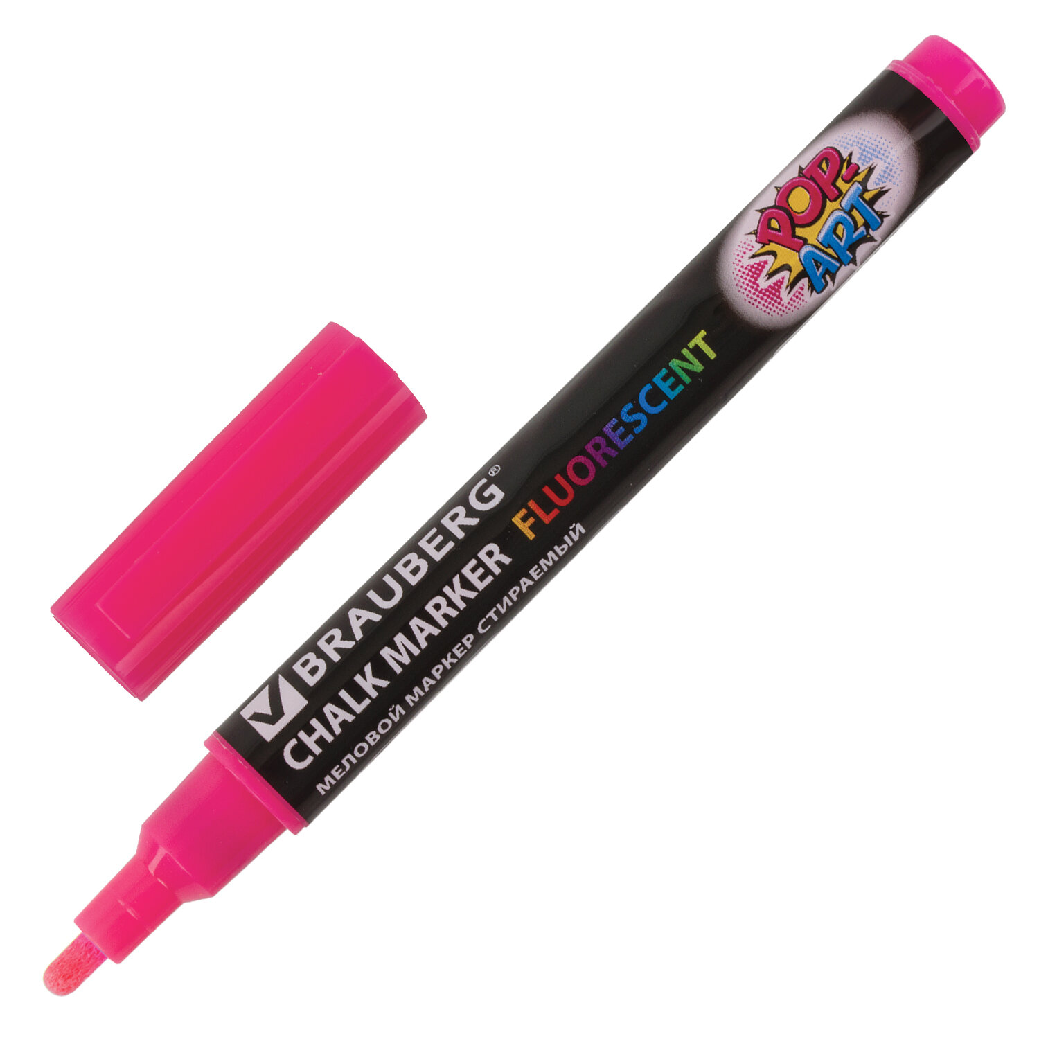 Маркер меловой "POP-ART" РОЗОВЫЙ, 3,5 мм, стираемый, для гладких поверхностей, BRAUBERG Код товара: 151522 133,56 ₽ Купить Производитель:BRAUBERG Сухостираемый меловой маркер BRAUBERG "POP-ART" - оригинальный инструмент для оформления различных зон помещений. Идеален для использования на школьных занятиях и детского творчества. СПОСОБ ПРИМЕНЕНИЯ: 1. Перед использованием хорошо встряхнуть с закрытым колпачком. 2. Снять колпачок, надавить на наконечник, дождаться, когда чернила полностью пропитают его. 3. После использования плотно закрыть колпачок. Предназначен для росписи, создания рисунков и надписей на зеркалах, стекле, меловой пленке и прочих гладких и прозрачных невпитывающих поверхностях. Рисунок получается плотный и яркий. Чернила на водно-меловой основе розового цвета без резкого запаха. Толщина линии письма - от 1 мм до 3,5 мм, зависит от угла наклона мелового маркера. Круглый корпус выполнен из пластика. Обладает следующими преимуществами: - чернила светятся в УФ-свете; - повышенная светостойкость; - пулевидный наконечник устойчив к повреждению и истиранию.Производство: КитайЦвет чернил: розовыйСерия: POP-ART 3,5 ммКоличество в комплекте: 1 шт.Форма наконечника: пулевидныйМинимальная толщина линии письма: 1 ммМаксимальная толщина линии письма: 3.5 ммСпецэффект чернил: -Чернила светятся в УФ-свете: даПовышенная светостойкость: даНаконечник устойчив к повреждению и истиранию: даТип стирания: сухостираемыйФорма корпуса: круглаяДиаметр корпуса: 12 ммМатериал корпуса: пластикОснова чернил: меловаяУпаковка: картонная коробкаСрок годности: 48 месВес: 14 грРазмер упаковки: 1.2 × 13.1 × 1.2 смПромежуточная упаковка: 10 штТранспортная упаковка: 800 штШтрих-код: 4606224226606 Сертификат-1.jpg Сертификат-2.jpg Сертификат-3.jpg