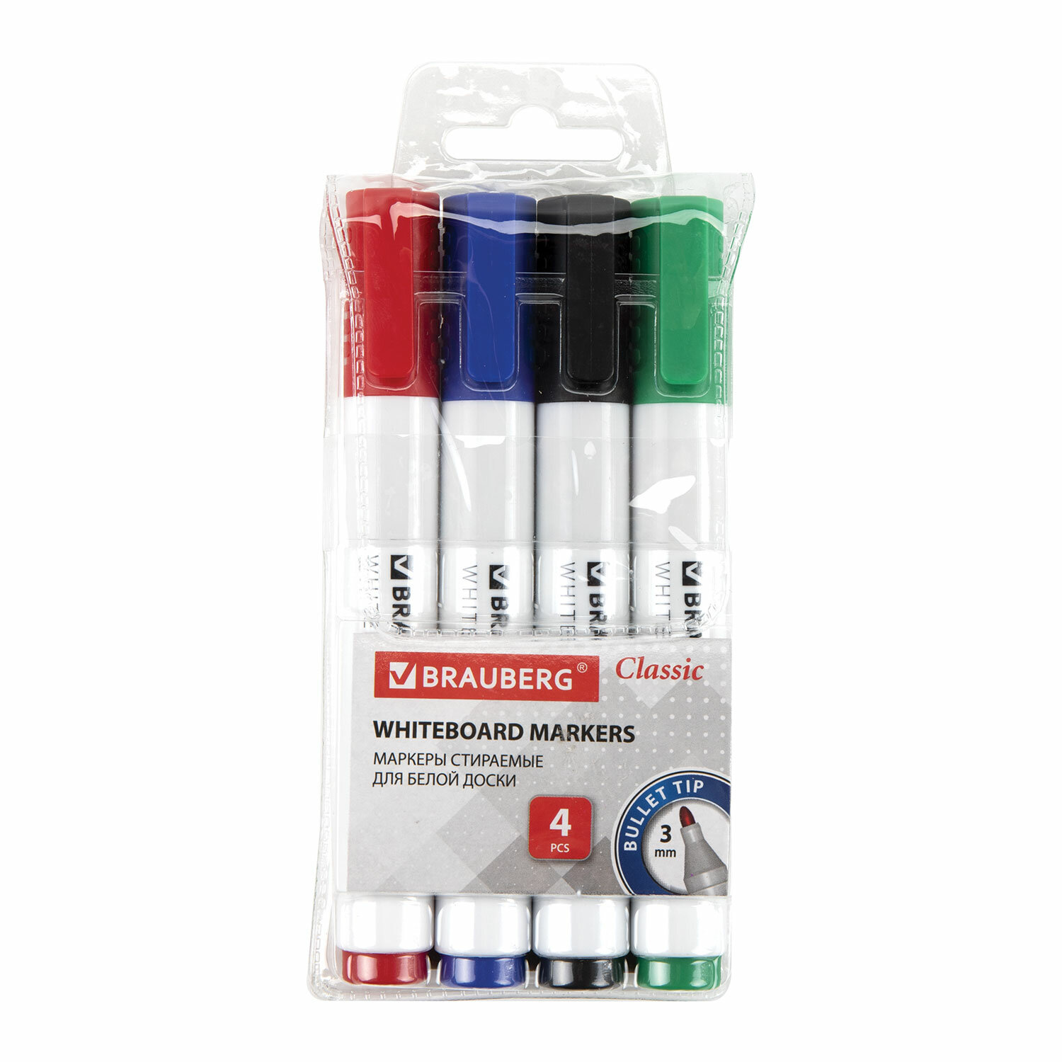 Маркеры стираемые для белой доски НАБОР 4 ЦВЕТА, BRAUBERG "CLASSIC", 3 мм, с клипом Код товара: 152117 258,23 ₽ Купить Производитель:BRAUBERG Набор маркеров BRAUBERG "CLASSIC" предназначен для использования на белых досках с магнитно-маркерной поверхностью. Идеально подходит для проведения презентаций, совещаний, уроков. 4 цвета в наборе: черный, красный, синий, зеленый. Круглый пластиковый корпус имеет диаметр 15 мм. Наконечник круглой формы обеспечивает толщину линии письма 3 мм, что позволяет писать крупным шрифтом, который будет хорошо виден. Основа чернил - спиртовая. Чернила быстро высыхают и не оставляют разводов, легко стираются сухой губкой. Изделие не перезаправляется. Цвет колпачка и клипа соответствует цвету чернил.Производство: КитайЦвет: ассортиСерия: CLASSICТолщина линии письма: 1, 1,5, 2, 2,5, 3Наконечник: круглыйКоличество в комплекте: 4 шт.Основа чернил: спиртоваяЧернила стираются сухой губкой: даНе протекает при перепаде давления: даНаличие клипа на колпачке: даМатериал корпуса: пластикСрок годности: 48 месВес: 76 грРазмер упаковки: 2.3 × 14.1 × 7.5 смОбъём: 0.0003 м3Промежуточная упаковка: 24 штТранспортная упаковка: 144 штШтрих-код: 4606224318561 Сертификат-1.jpg Сертификат-2.jpg Сертификат-3.jpg