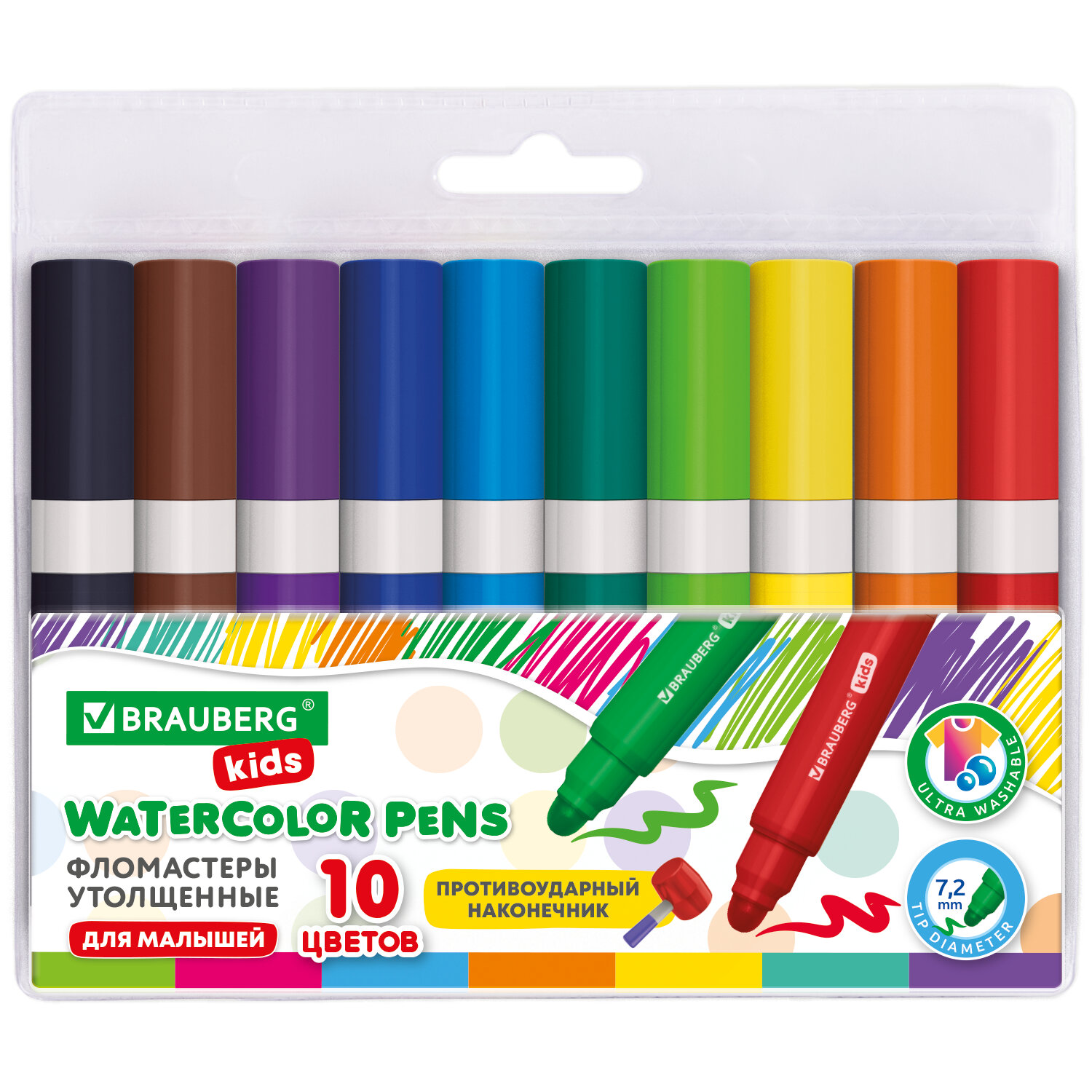 Фломастеры суперсмываемые толстые для малышей BRAUBERG KIDS, 10 цветов, ПВХ-упаковка Код товара: 152605 226,71 ₽ Купить Производитель:BRAUBERG KIDS Толстые фломастеры BRAUBERG KIDS – прекрасные помощники в развитии творческих способностей у детей! Утолщённые фломастеры круглой формы сделаны из прочного пластика. Длина фломастера – 103 мм, диаметр – 13 мм. Благодаря толщине линии письма 1-5 мм и диаметру пишущего узла 7,2 мм процесс рисования и раскрашивания становится легким и разнообразным. Длина письма составляет 300 м: такого расхода хватит надолго. Фломастеры изготовлены на водной основе. Утолщенный круглый наконечник устойчив к продавливанию, не проваливается внутрь корпуса. Колпачок имеет специальные прорези для вентиляции, которые способствуют прохождению воздуха при попадании в дыхательные пути малыша. Рекомендованы для детей от 3-х лет.Производство: КитайКоличество цветов: 10Форма корпуса: круглаяУтолщенный: даЭффект чернил: классическиеТип чернил: ультрасмываемыеСерия: KidsШирина линии письма: 5 ммПишущий узел: 7.2 ммДлина письма: 300 мДлина корпуса: 103 ммДиаметр корпуса: 13 ммВентилируемый колпачок: даЗаблокированный пишущий узел: даУпаковка: ПВХ-конверт с европодвесомСрок годности: 60 месВес: 123 грРазмер упаковки: 1.8 × 17.3 × 13.9 смОбъём: 0.0005 м3Промежуточная упаковка: 24 штТранспортная упаковка: 144 штШтрих-код: 4606224467368 Сертификат-1.jpg Сертификат-2.jpg