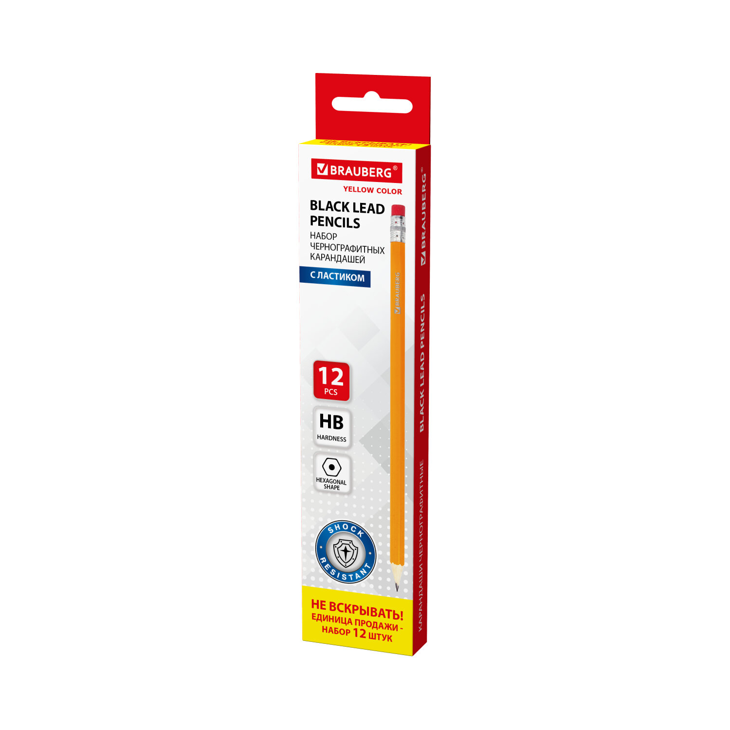 Карандаши чернографитные простые с ластиком HB, ВЫГОДНАЯ УПАКОВКА КОМПЛЕКТ 12 штук, BRAUBERG Код товара: 180635 181,39 ₽ Купить Производитель:BRAUBERG Набор чернографитных карандашей BRAUBERG - первый помощник для выполнения проектно-конструкторских работ, позволяет сделать легкий набросок, быстрый стремительный рисунок или нарисовать полноценную картину. Изготовлены из дерева высокого качества, оснащены ластиком. Имеют шестигранное сечение. Карандаши длиной 190 мм легко точатся и не крошатся. Обладают средней степенью твердости – HB. Диаметр грифеля - 2,05 мм. Выполнены в желтом цвете. Поставляются заточенными.Производство: КитайТвердость: HBЗаточенный: даНаличие ластика: даДиаметр грифеля: 2.05 ммКоличество карандашей в упаковке: 12 шт.Количество твердостей в наборе: 1Форма корпуса: шестиграннаяУдаропрочный грифель: даДлина карандаша: 190 ммМатериал корпуса: деревоЦвет корпуса: желтыйДизайн: без дизайнаКоличество дизайнов в упаковке: 1 шт.Упаковка: картонная коробка с европодвесомВес: 83 грРазмер упаковки: 1.6 × 21.6 × 5.1 смОбъём: 0.0002 м3Промежуточная упаковка: 12 штТранспортная упаковка: 240 штШтрих-код: 4606224062228 Сертификат-1.jpg Сертификат-2.jpg Сертификат-3.jpg