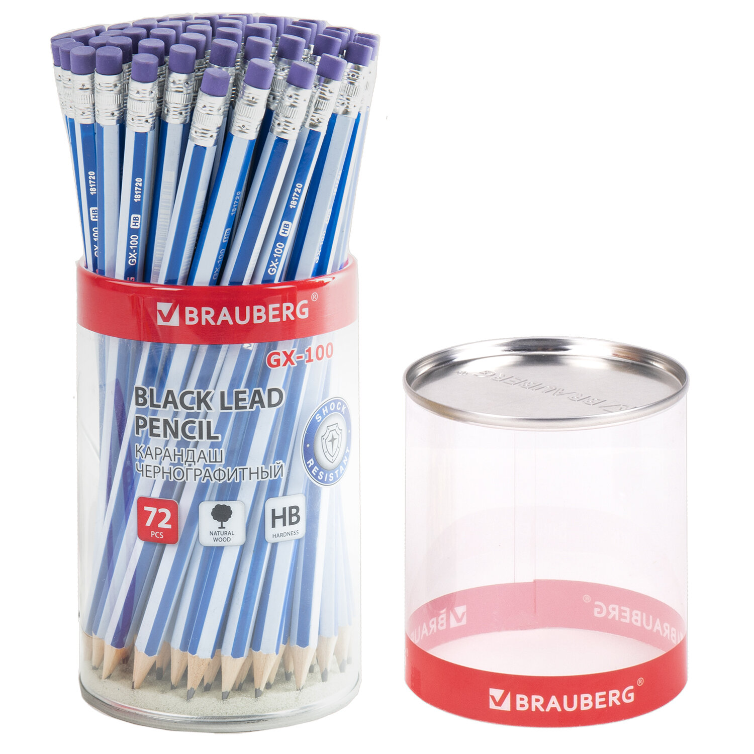 Карандаш чернографитный BRAUBERG "GX-100", 1 шт., HB, с ластиком, корпус синий Код товара: 181720 15,09 ₽ Купить Производитель:BRAUBERG Карандаш чернографитный BRAUBERG "GX-100" - первый помощник для выполнения различных заметок, позволяет сделать легкий набросок, быстрый стремительный рисунок или нарисовать полноценную картину. Используется повсеместно. Каждый карандаш имеет индивидуальный штрих-код. Легко затачивается, максимально устойчив к повреждениям. Изготовлен из дерева высокого качества. Имеет шестигранное сечение и оснащен ластиком. Карандаш длиной 185 мм обладает средней степенью твердости – HB. Цвет корпуса - синий. Поставляется заточенным в пластиковой тубе по 72 штуки.Производство: КитайТвердость: HBЗаточенный: даНаличие ластика: даДиаметр грифеля: 2.05 ммКоличество карандашей в упаковке: 1 шт.Количество твердостей в наборе: 1Серия: GX-100Форма корпуса: шестиграннаяУдаропрочный грифель: даДлина карандаша: 185 ммМатериал корпуса: деревоЦвет корпуса: голубой/синийДизайн: без дизайнаКоличество дизайнов в упаковке: 1 шт.Упаковка: пластиковая тубаВес: 7 грРазмер упаковки: 0.7 × 18.6 × 0.7 смПромежуточная упаковка: 72 штТранспортная упаковка: 2880 штШтрих-код: 4606224283135 Сертификат-1.jpg Сертификат-2.jpg Сертификат-3.jpg