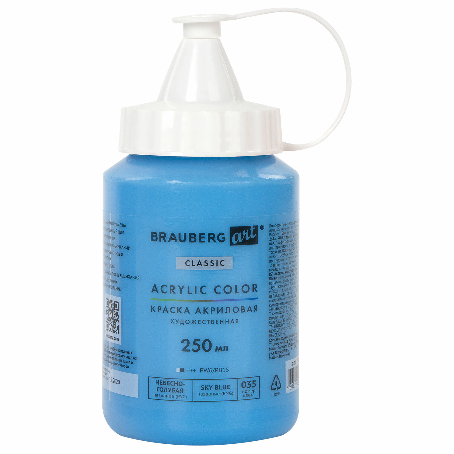 Краска акриловая художественная BRAUBERG ART CLASSIC, флакон 250 мл, НЕБЕСНО-ГОЛУБАЯ Код товара: 191711 330,86 ₽ Купить Производитель:BRAUBERG ART Художественная акриловая краска BRAUBERG ART CLASSIC предназначена для живописи и декоративных работ. Используется при работе почти на любой поверхности: бумаге, картоне, холсте, дереве, коже. Краска насыщенного голубого цвета с легким глянцем. Быстрое высыхание без изменения цвета. Отличная укрывистость и светостойкость. Прекрасно смешивается. Благодаря высокой покрывающей способности для достижения оптимального эффекта достаточно нанести всего один слой краски. Разбавляется водой. Температурные пределы транспортирования и хранения – не ниже 0°. Удобный дозировочный клапан. Не токсична и не имеет неприятного резкого запаха. Поставляется в пластиковой тубе объемом 250 мл.Производство: КитайЦвет: небесно-голубойАртикул цвета: 35Спецэффект цвета: глянцевыйСерия: Classic, 250mlОбъем: 250 млТип краски: акриловаяДозировочный клапан: даУпаковка: флаконСрок годности: 48 месВес: 351 грРазмер упаковки: 6.7 × 12.8 × 6.7 смОбъём: 0.0008 м3Промежуточная упаковка: 12 штТранспортная упаковка: 48 штШтрих-код: 4606224298184 Сертификат-1.jpg Сертификат-2.jpg Сертификат-3.jpg